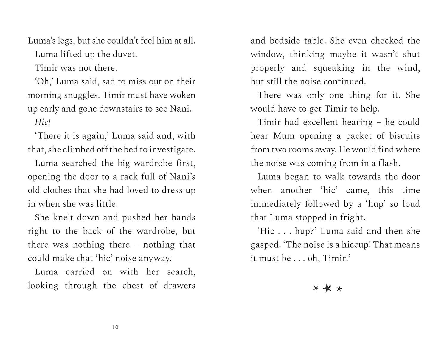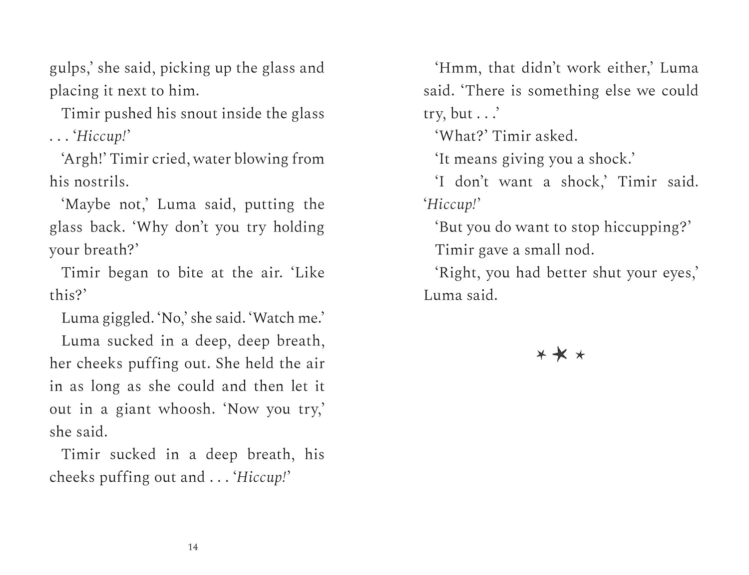 And that's not the only discovery to be made. When practising for a dog show in the garden Timir realises something very unexpected: he can fly. But Luma feels worried – what if Timir flies away and never comes back? Is she brave enough to trust Timir and let him spread his wings?