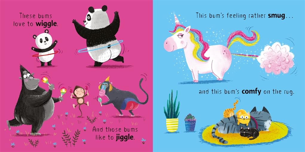 Jiggly bums, wiggly bums, fluffy bums, scruffy bums...Featuring an array of animal bums - from little to large, and everything in between - this brilliantly silly picture book will get children giggling.Just follow the bouncy read-aloud rhyme, then get ready to join in with the jiggly wiggly dance finale!