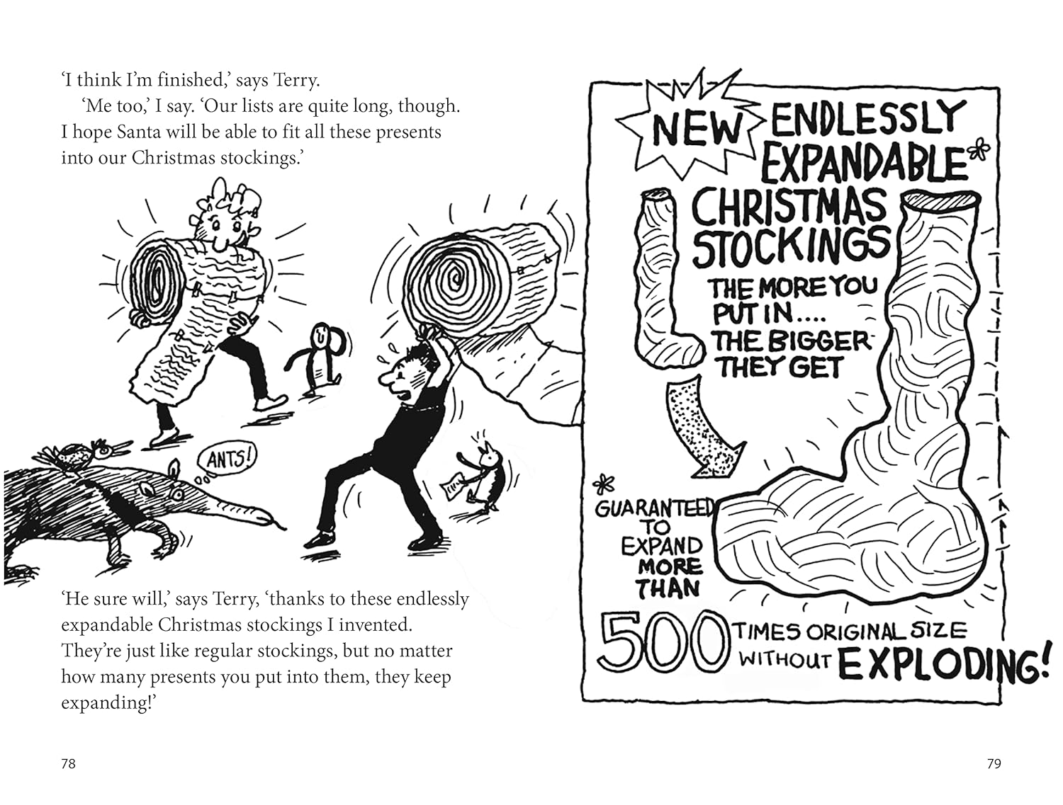 Merry Christmas from the treehouse! The 156-Storey Treehouse is the twelfth book of Andy Griffiths and Terry Denton's wacky treehouse adventures, where the laugh-out-loud story is told through a combination of text and fantastic comic book-style illustrations. This hardback edition is a perfect stocking filler! The kind of book I would have loved as a kid' - Tom Fletcher, author of The Christmasaurus Andy and Terry have added 13 new levels to their treehouse! There's a wishing well, a world-record breaking level, a TV quiz show (hosted by Quizzy the Quizzical Quizbot) and an amazing mind-reading sandwich-making machine! But it's the night before Christmas, and things are not going well for them - they're at war with an angry snowman, Santa has crashed his sleigh and fallen into the cloning machine, and Mr. Big Nose wants a new book by tomorrow! Can they defeat the snowman, save Christmas, and get their book written in time? Well, what are you waiting for? Come on up! Climb more fun-filled levels by collecting all thirteen books in the seven million-copy-selling series - the perfect chapter books for reluctant readers.