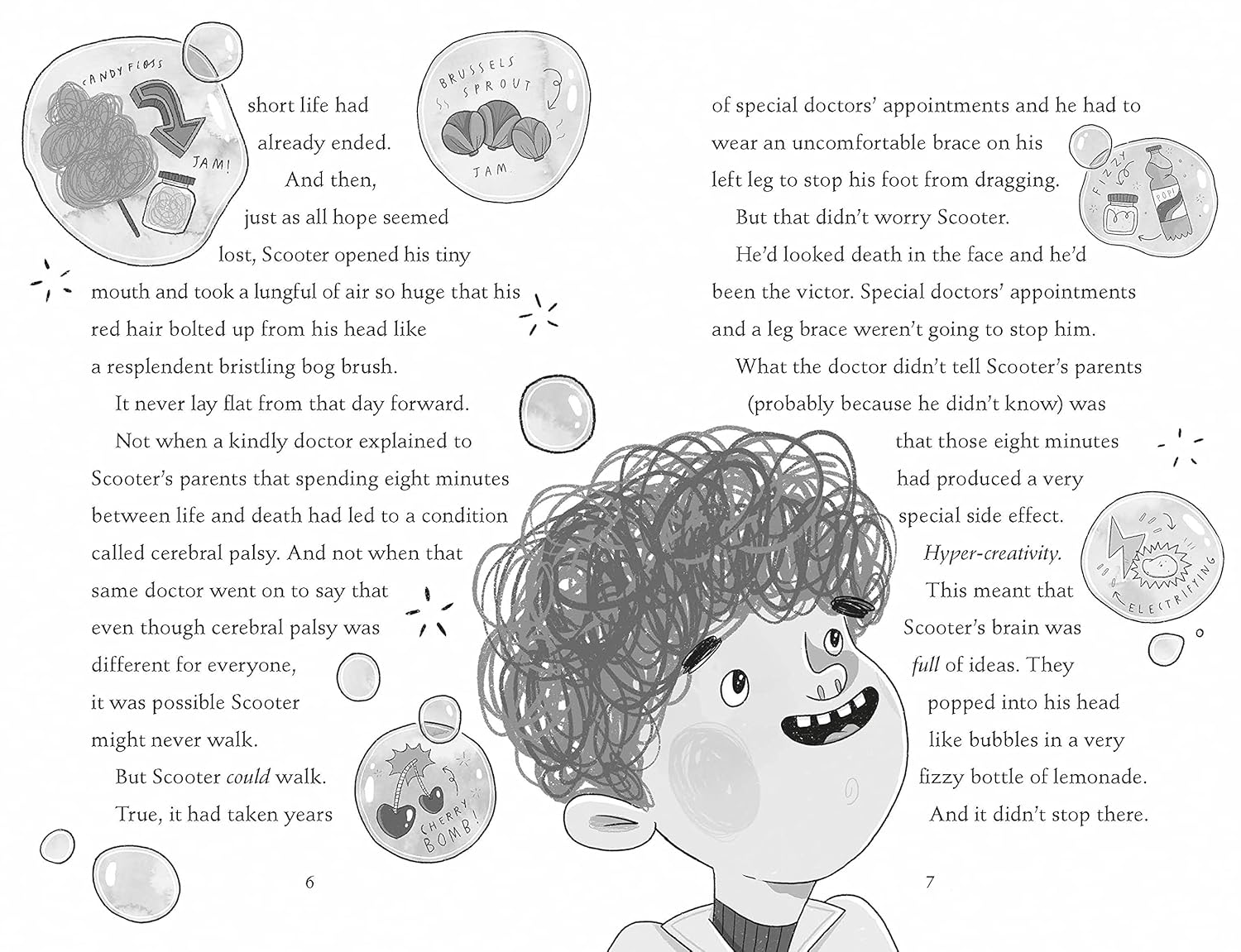 Scooter McLay’s cerebral palsy affects how quickly he can move his body, but his hyper-creative brain is a constant fizz of brilliant ideas. He spends every day inventing top secret recipes and machines for his family’s jam factory. There’s just one thing missing ... a pet, to share it all with. Or better still, a friend. When a tiny alien named Fizzbee crashes through the factory window, she might just be the answer. Now it’s all hands on deck, as they team up to save the factory from dastardly neighbour Daffy Dodgy.