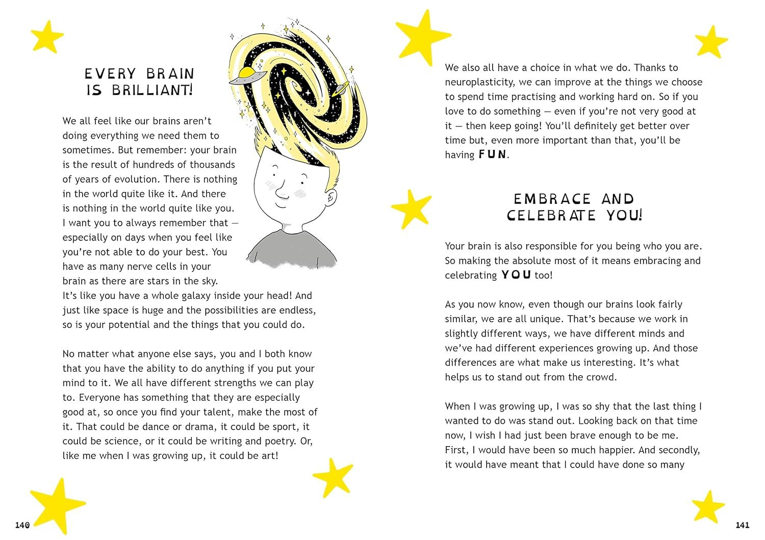 Brains don't look like much, do they? A touch of slime here, some squishy grey stuff there. But in fact, your brain is more powerful than any supercomputer, and it is completely fascinating. Have you ever wondered why you're left-handed? Or why you have dreams? Or what causes pins and needles? I'll tell you what else: your brain is completely unique. That's right: no one else has a brain quite like yours. So if you want to learn how to make the most of YOUR brain, this is the book for you. It doesn't just explain how the brain works. It'll teach you how to train your brain to get better at stuff you find difficult. It'll show you how different people think in different ways and why that makes each person so special. It'll help you keep your mind happy and healthy. Because when that brilliant brain of yours is in tip-top condition, you can be the BEST version of you.