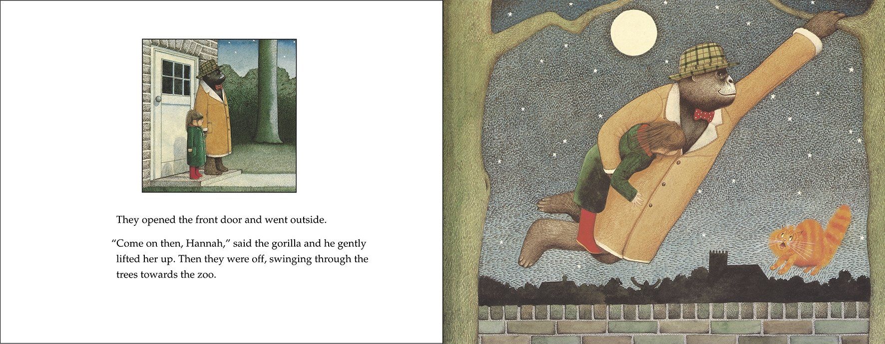 Hannah loves gorillas but has never seen one. Her father's too busy to take her to the zoo or for anything else come to that. For her birthday, Hannah asks her father for a gorilla but is disappointed when she discovers that the gorilla she's got is just a toy one. But then something extraordinary happens ... the toy turns into a real gorilla, who puts on her father's hat and coat and takes her off for a magical visit to the zoo.