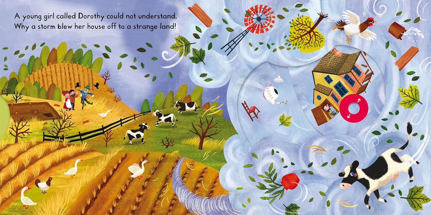 Push, pull and slide the scenes to bring L. Frank Baum's classic story of The Wizard of Oz to life. The Wizard of Oz is the perfect introduction for toddlers who like to play as they read, with gentle rhyming text and easy-to-handle mechanisms on every spread. This much-loved classic, and its cast of fantastical characters, has been beautifully reimagined for a new generation, with illustrations by Miriam Bos. Listen along to an audio recording of this story by scanning the QR code on the back cover. Discover more magical tales in the First Stories series with Beauty and the Beast, Alice in Wonderland and The Jungle Book.