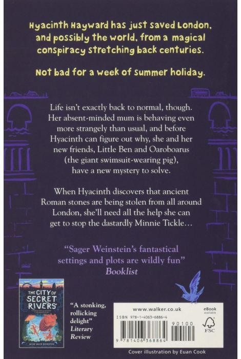 Hyacinth has just saved London, and possibly the world, from a magical conspiracy stretching back centuries. Not bad for a week of summer holiday. But why is her family linked to the ancient secrets of London? Hyacinth needs to find out, and when she discovers that Ancient Roman stones are being stolen from all around the city, it's time for another adventure with the help of friends new and old, including Oaroboarus, a giant pig in a swimsuit. A fast-paced caper with a magical cast of characters including the dastardly Minnie Tickle whose skin is inscribed with powerful tattooes, a host of opinionated living stone sculptures, Hyacinth's new neighbour Dasra (who may or may not be trustworthy) and the Corkers: a police force made entirely out of cork.
