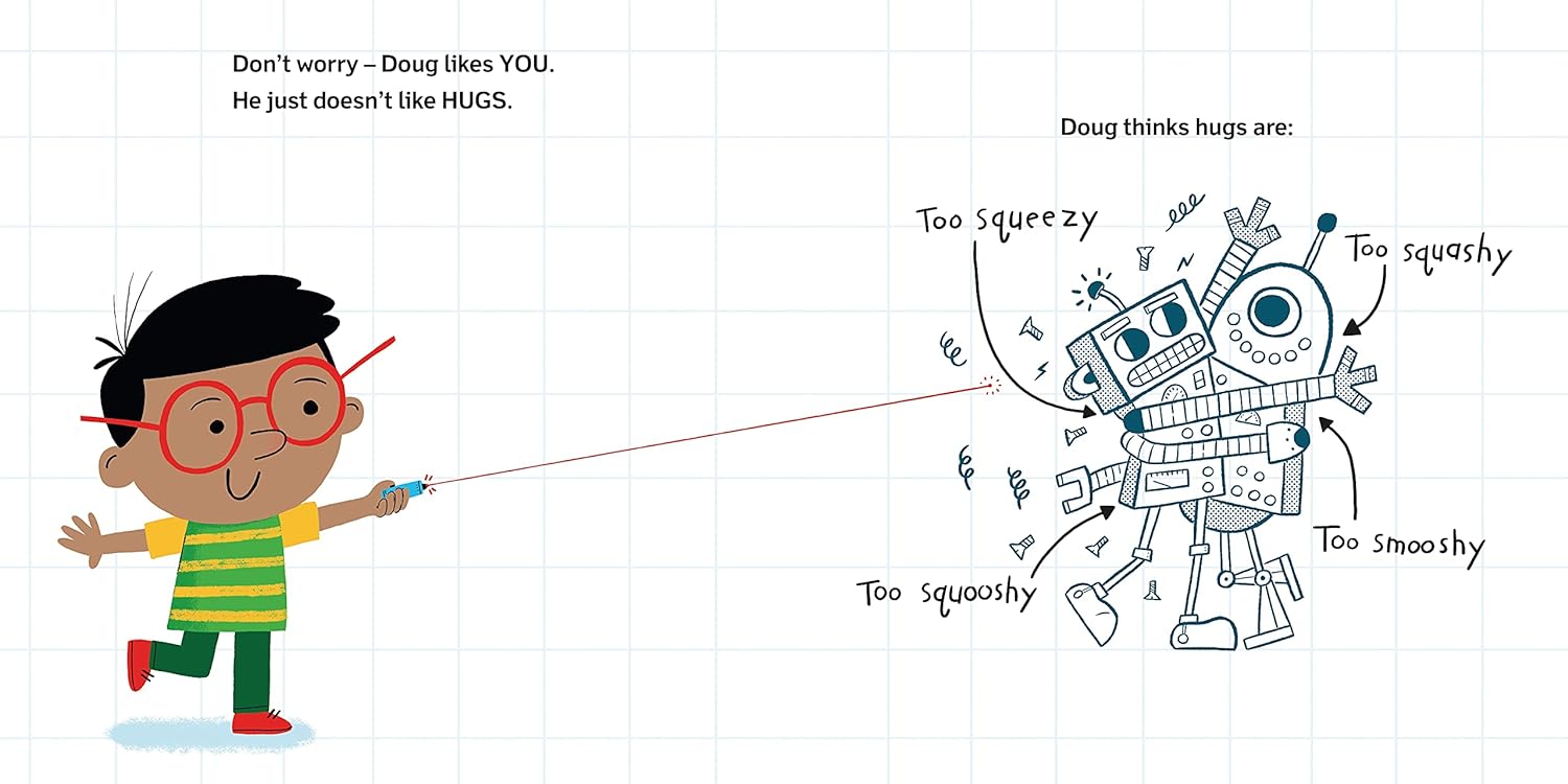 Doug doesn't like hugs. He thinks they're too squeezy, too squashy, too squooshy, too smooshy. However, Doug is a master of high fives (and low fives and side fives).