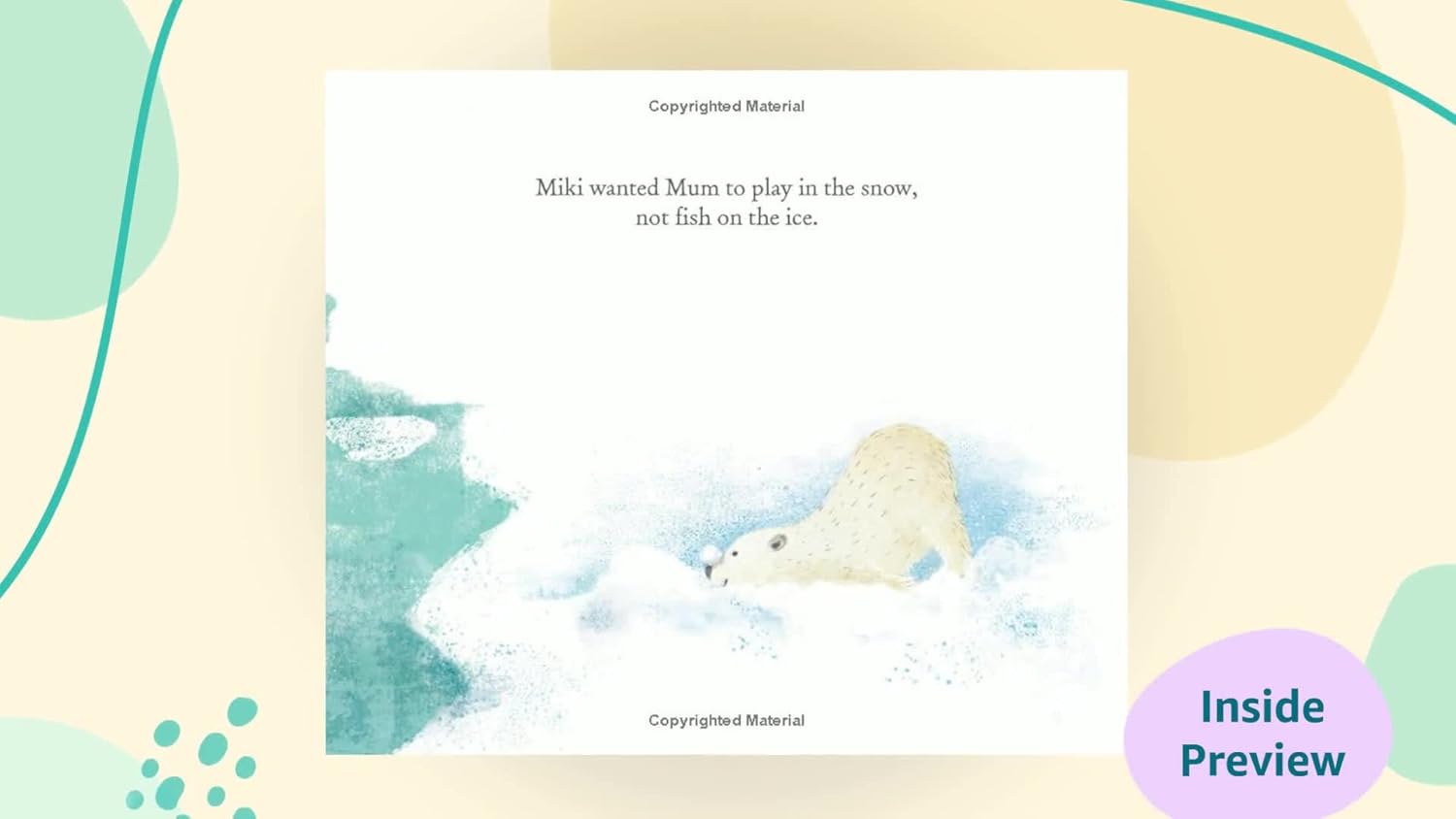 A little polar bear, Miki, wanders away while his mother is diving for fish. He sees a dot in the snow and rushes towards it. Readers discover that the dot is a little girl. But Miki has never seen a human before and the little girl has never seen a polar bear. They discover more about each other as they play in the snow but then the perils of the polar landscape impel Miki to take the little girl home before undertaking the long journey to find his own mother.