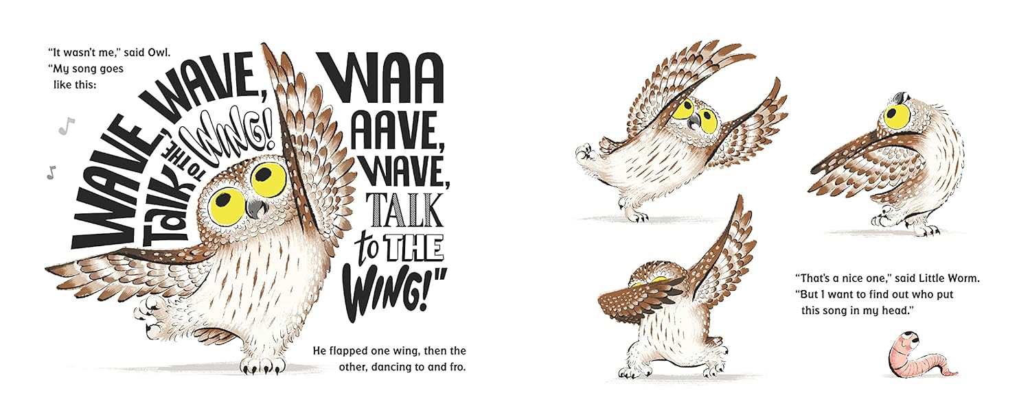 Have you ever had a song stuck in your head that you just can't shake? Shimmy shimmy no sashay sings little worm as he wriggles along. He's got a song stuck in his head - he's got an ear worm! But where has it come from? It's not Owl's song. And it's not Chipmunk's song either. Will Little Worm ever discover where the catchy tune in his head came from.