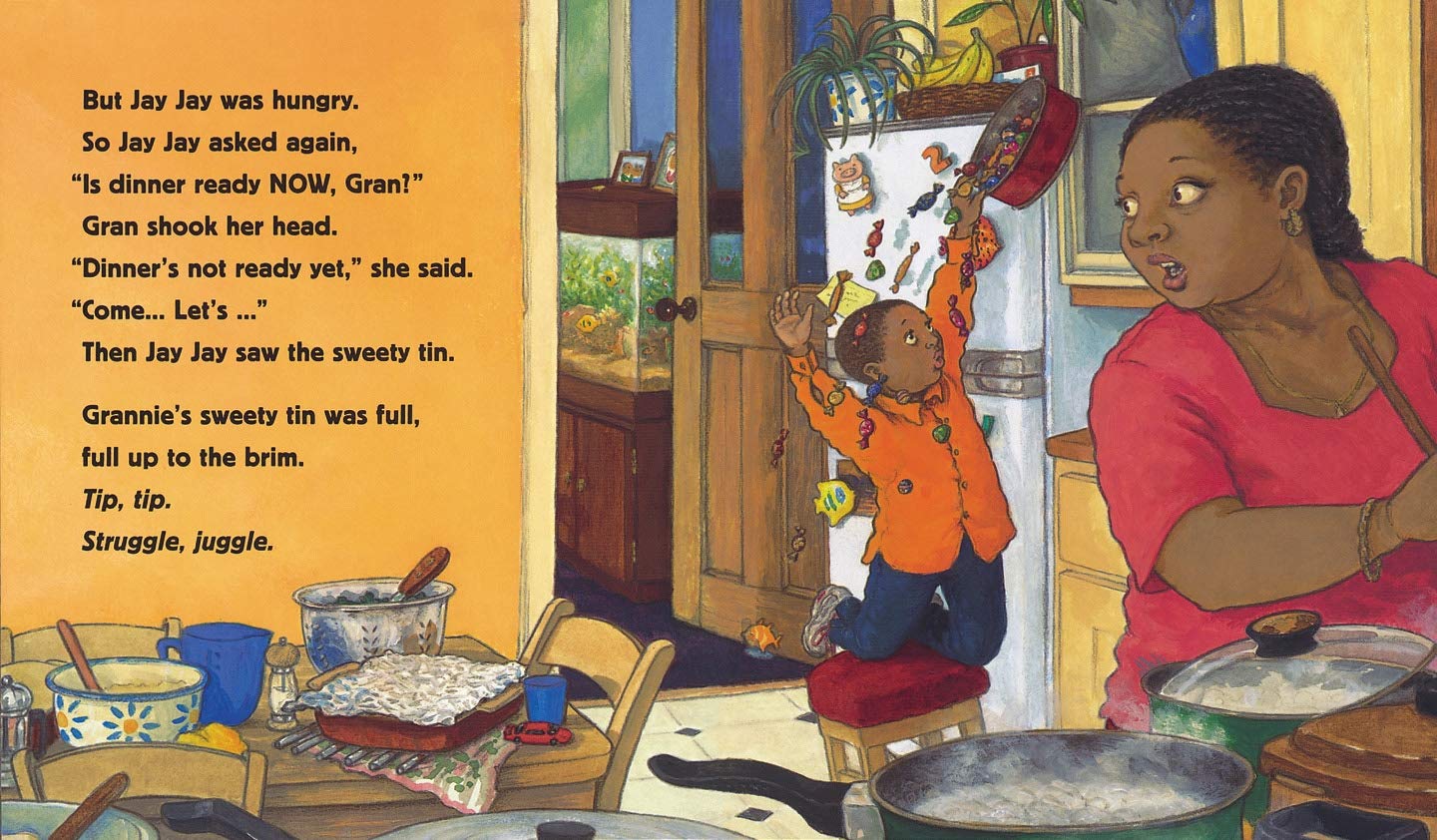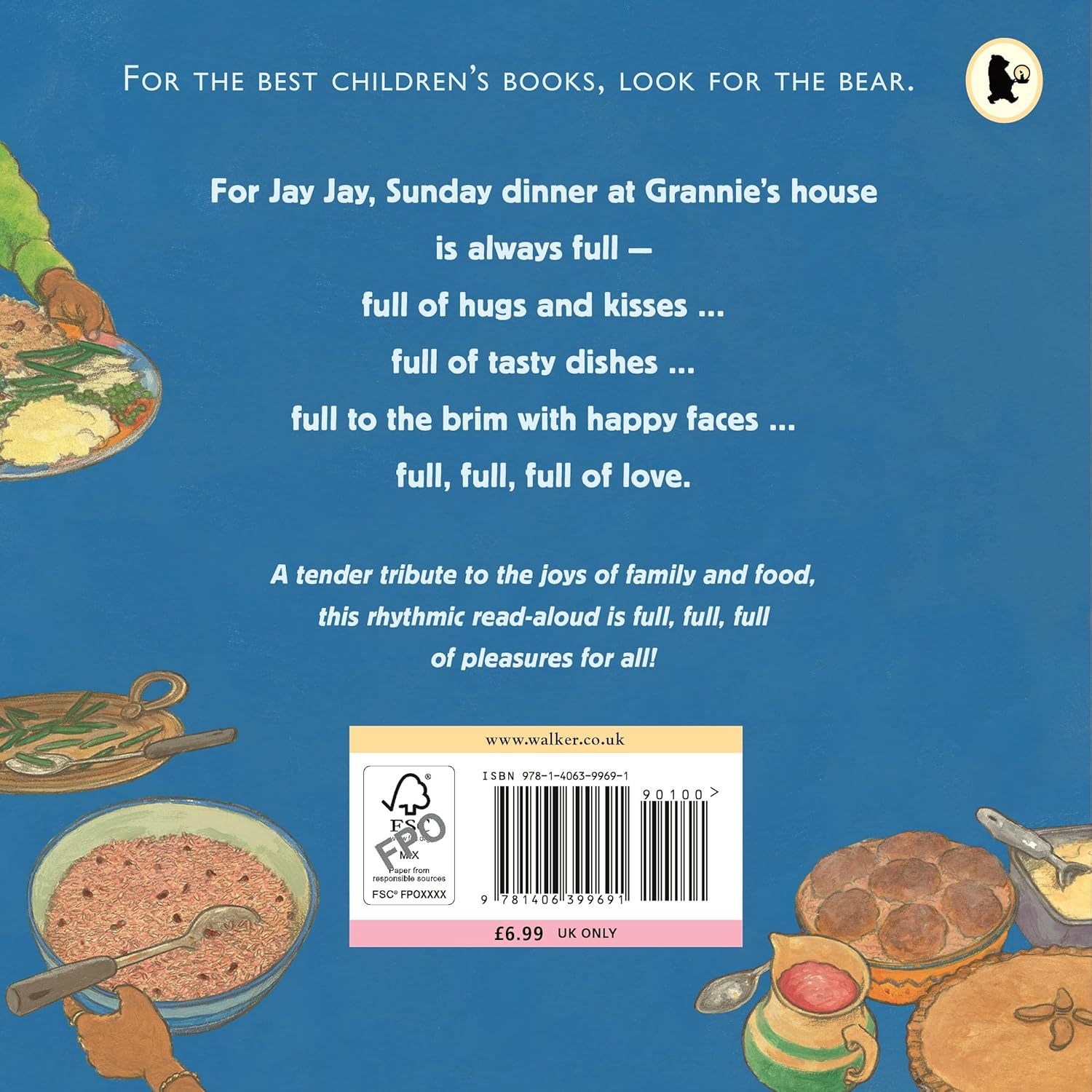 For Jay Jay, the youngest member of an exuberant extended family, Sunday dinner at Grannie's can be full indeed ۥ full of hugs and kisses, full of tasty dishes, full to the brim with happy faces, and full, full, full of love. With a special focus on the bond between little Jay Jay and his grannie, Trish Cooke introduces us to a family we are sure to want more, more, more of.