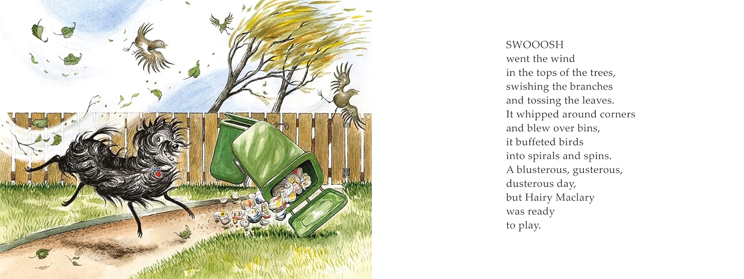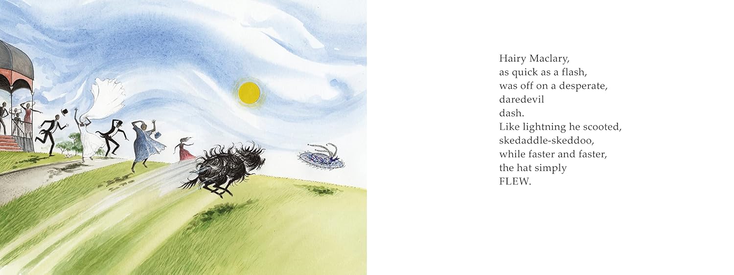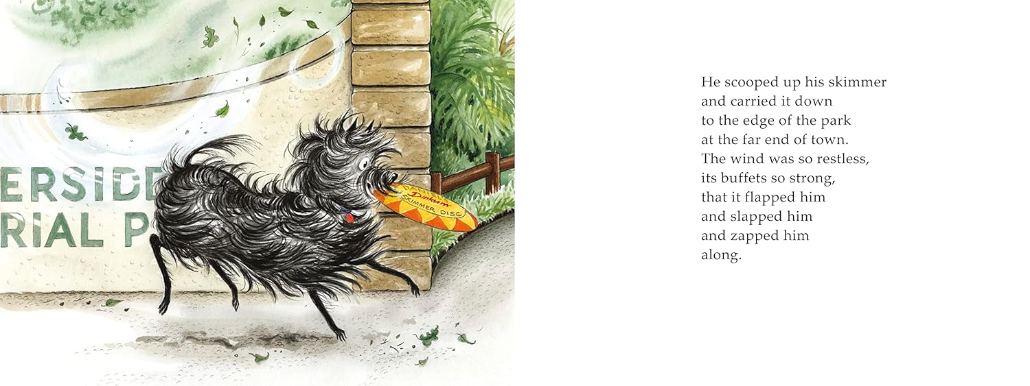 Hairy Maclary is off to the park with his skimmer to have some fun in suitably doggy style. When he comes across a wedding party and the wind whips Grandmother Pughs hat away hes the hero of the moment when he fetches it back. Also available in the series Sit Bone.