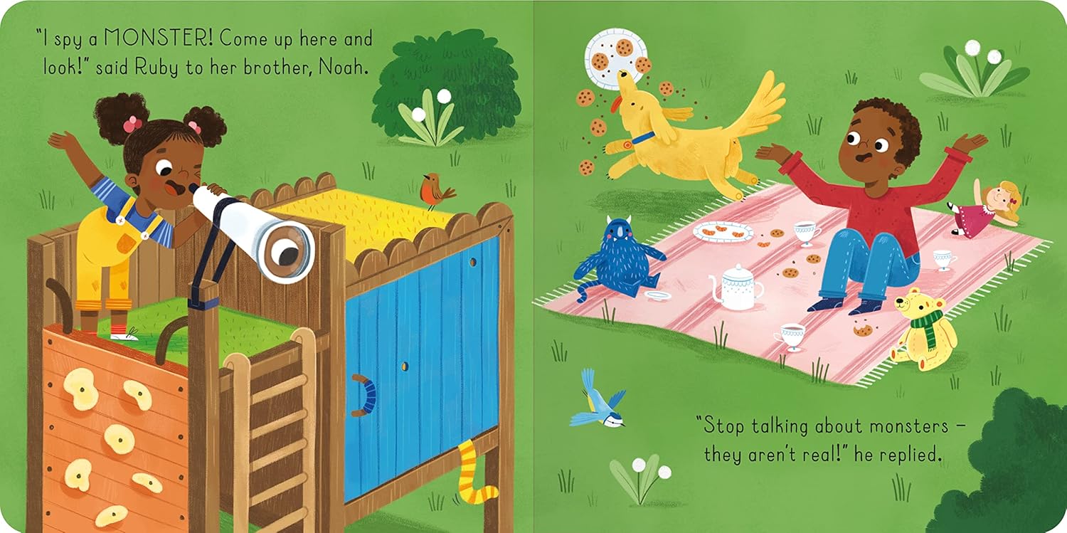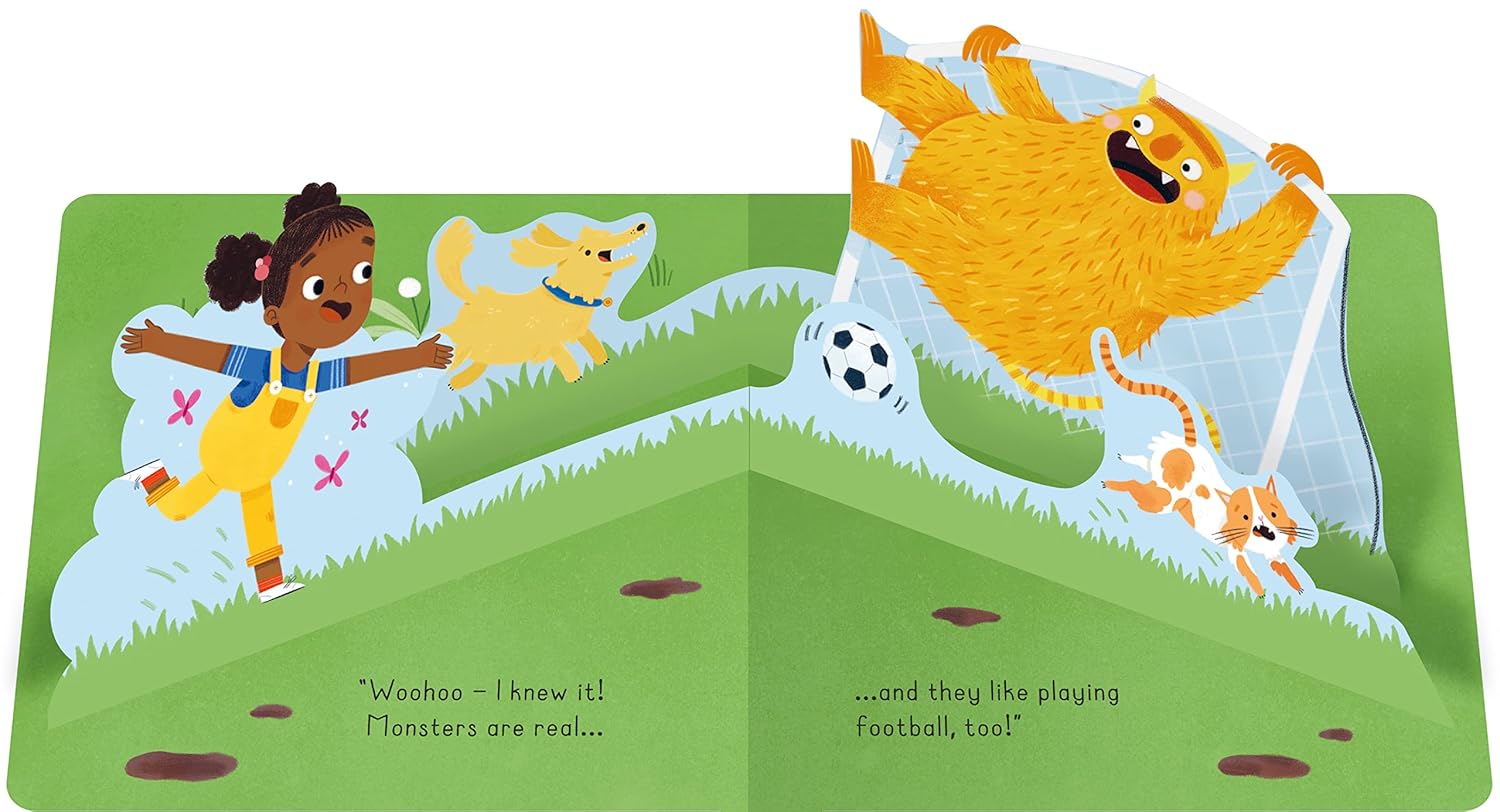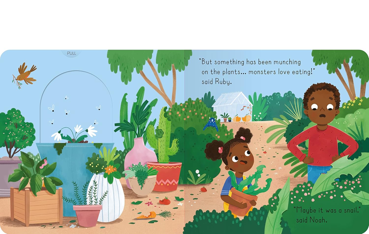 Join a young brother and sister in this fun interactive picture book with pop-out flaps as they searches for traces of a monster in their garden. This beautifully illustrated fun interactive book follows them around their garden on their search for a monster. They follow a growling noises and other clues, and on each page readers can spot glimpses of the monster. Lift the flaps, pull the sliding tabs and open the pop-ups to help them find the monster, as the clever interactive features bring this book to life! Hide and Peek: Monster is a playful, interactive board book with a fun peekaboo element which young children will love! Also available from the Hide and Peek series are Dragon, Mermaid and Unicorn.