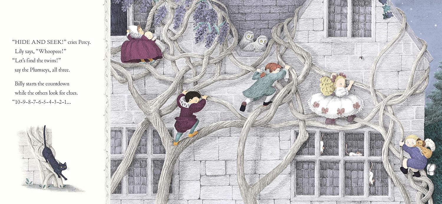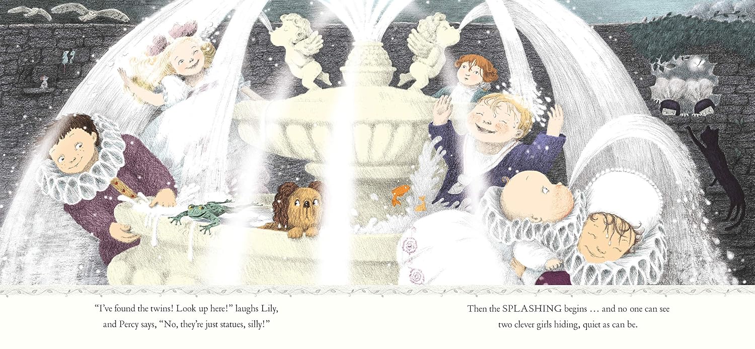 A midsummer moon shines on Shiverhawk Hall, where portraits of children come alive on the wall... As night falls, and the DeVillechild twins are nowhere to be seen, the other children escape their frames in search of two girls in white dresses and, possibly, a midnight game in the garden. Out in the night air, through the maze, and into the woods they go, looking for their mysterious friends. Will they be able to find the twins before the sun rises?