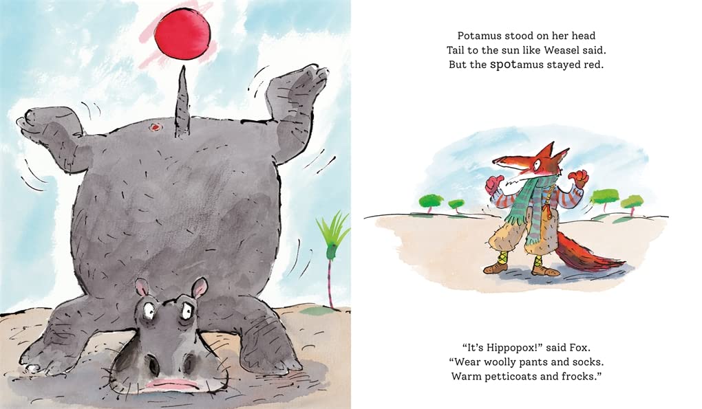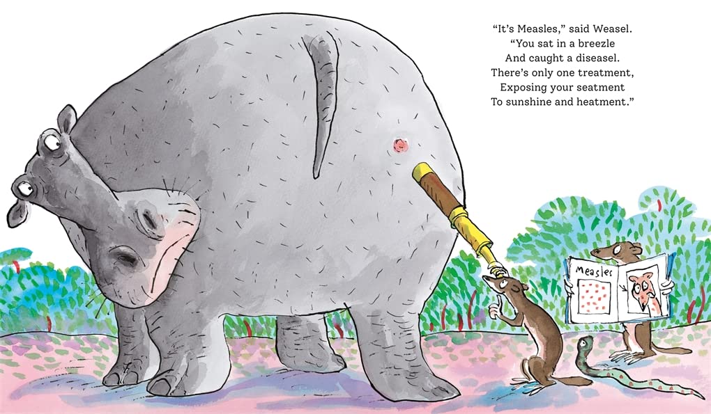 But the spot on Hippo's bottomus was not a diseasel, not even a spotamus but something quite silly . . .