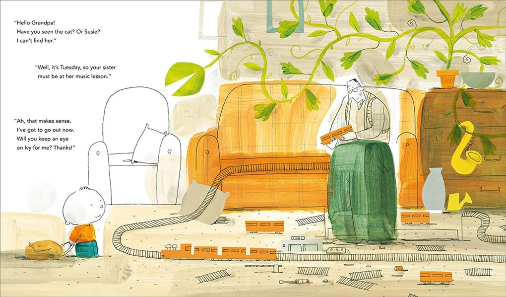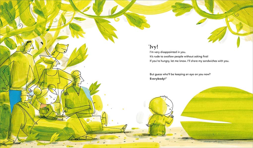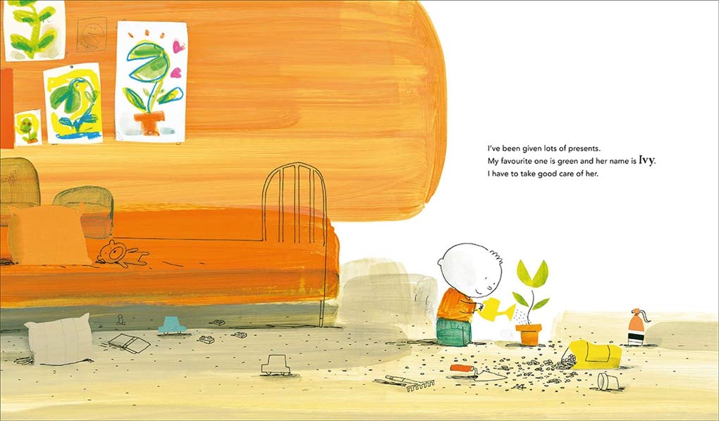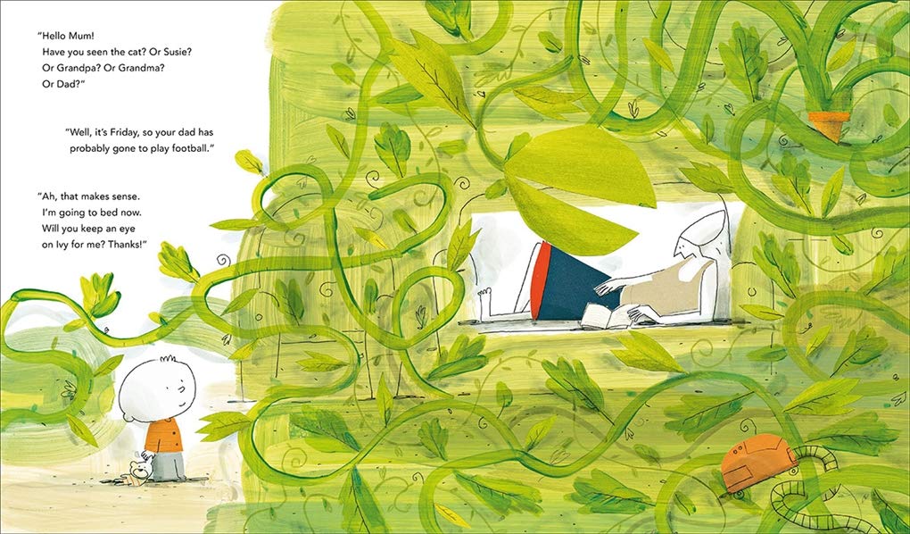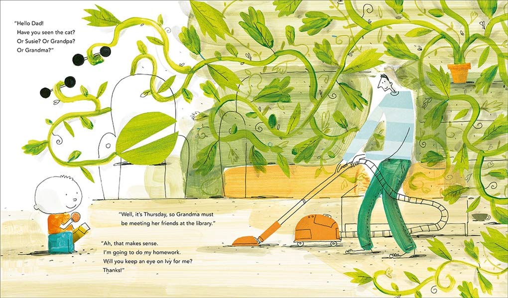The hero of our story loves his birthday present: a plant he names Ivy. But little does he know, Ivy is a high-maintenance sort of plant, one who requires special daily attention, and has a secret appetite for mischief. On Monday, our hero asks his sister to keep an eye on Ivy while he is out, but he arrives home and where has his sister disappeared to? The next day he must ask Grandfather to look after the plant, but he vanishes too, as does Granny when she watches Ivy on Wednesday. Throughout the week the house becomes more and more empty, while Ivy continues to fill it, thriving and growing bigger each day€¦what is going on here? The mystery is solved with a surprise pop-up that reveals all!