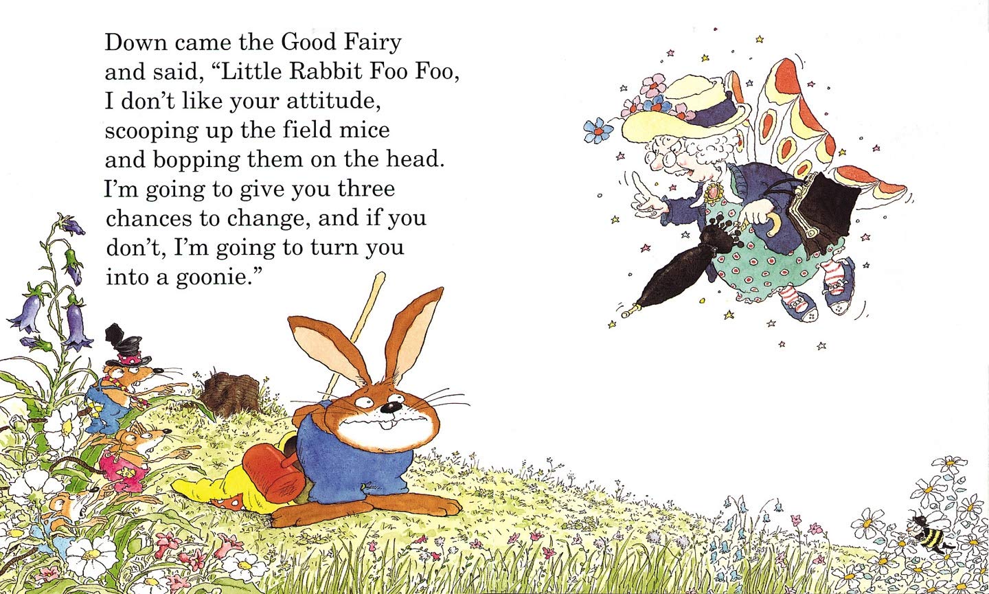 He's wild, he's wicked, he's Little Rabbit Foo Foo! In this read-aloud romp by the incomparable Michael Rosen, author of We're Going on a Bear Hunt, the bully-boy bunny likes nothing better than to ride through the forest bopping everyone on the head. Wriggly worms, tigers, no one is safe. But here comes the Good Fairy and she is not amused!