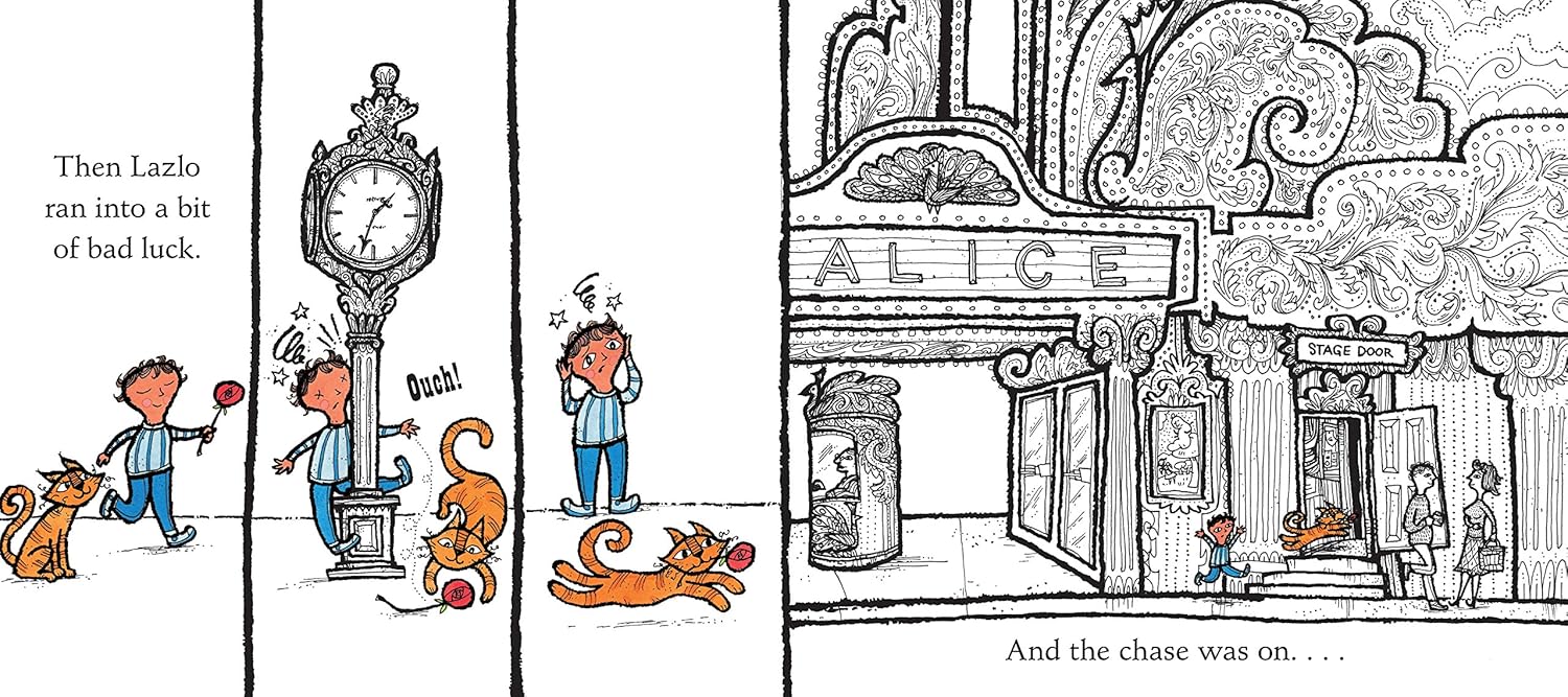 From Steve Light, the creator of Have You Seen My Dragon?, Have You Seen My Monster? and Swap!, comes a riotous romp backstage at the theatre! Lazlo is in love. So, with the perfect red rose in hand, he sets off to the theatre, where the girl of his dreams is starring in Alice in Wonderland. But when a cat snatches the flower and dashes backstage, Lazlo is in for a bit of bad luck. And it's no wonder, since, at the Peacock Theatre, they've broken every superstitious rule in the book. The chase is on past the tailor, into the orchestra, over the prop table €¦ even through The Mad Hatter's tea party! Will Lazlo catch the cheeky kitty in time to present the flower to his lady love?