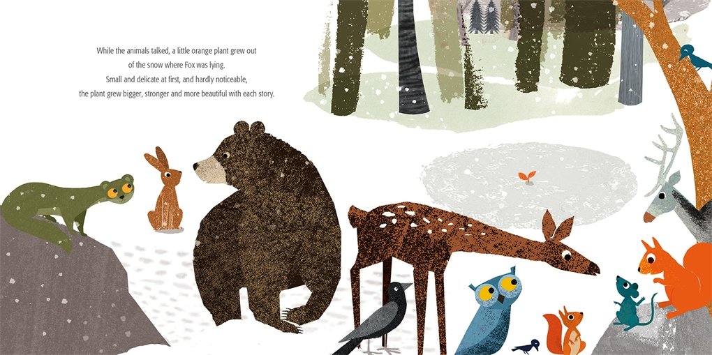 Fox has lived a long and happy life in the forest, but now he is tired. He lies down in his favourite clearing, and falls asleep for ever. Before long, Fox's friends begin to gather in the clearing. One by one, they tell stories of the special moments that they shared with Fox. And so, as they share their memories, a tree begins to grow, becoming bigger and stronger with each memory, sheltering and protecting all the animals in the forest, just as Fox did when he was alive.