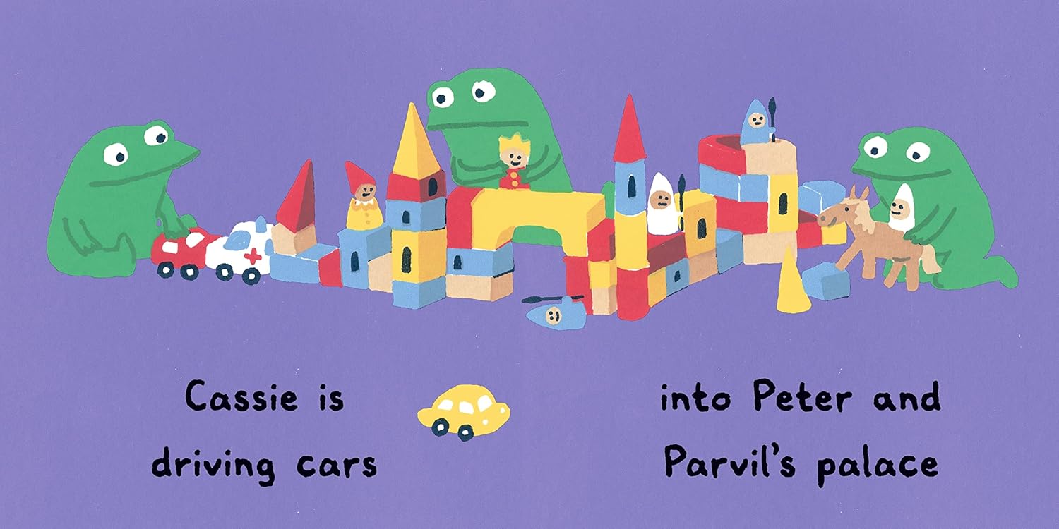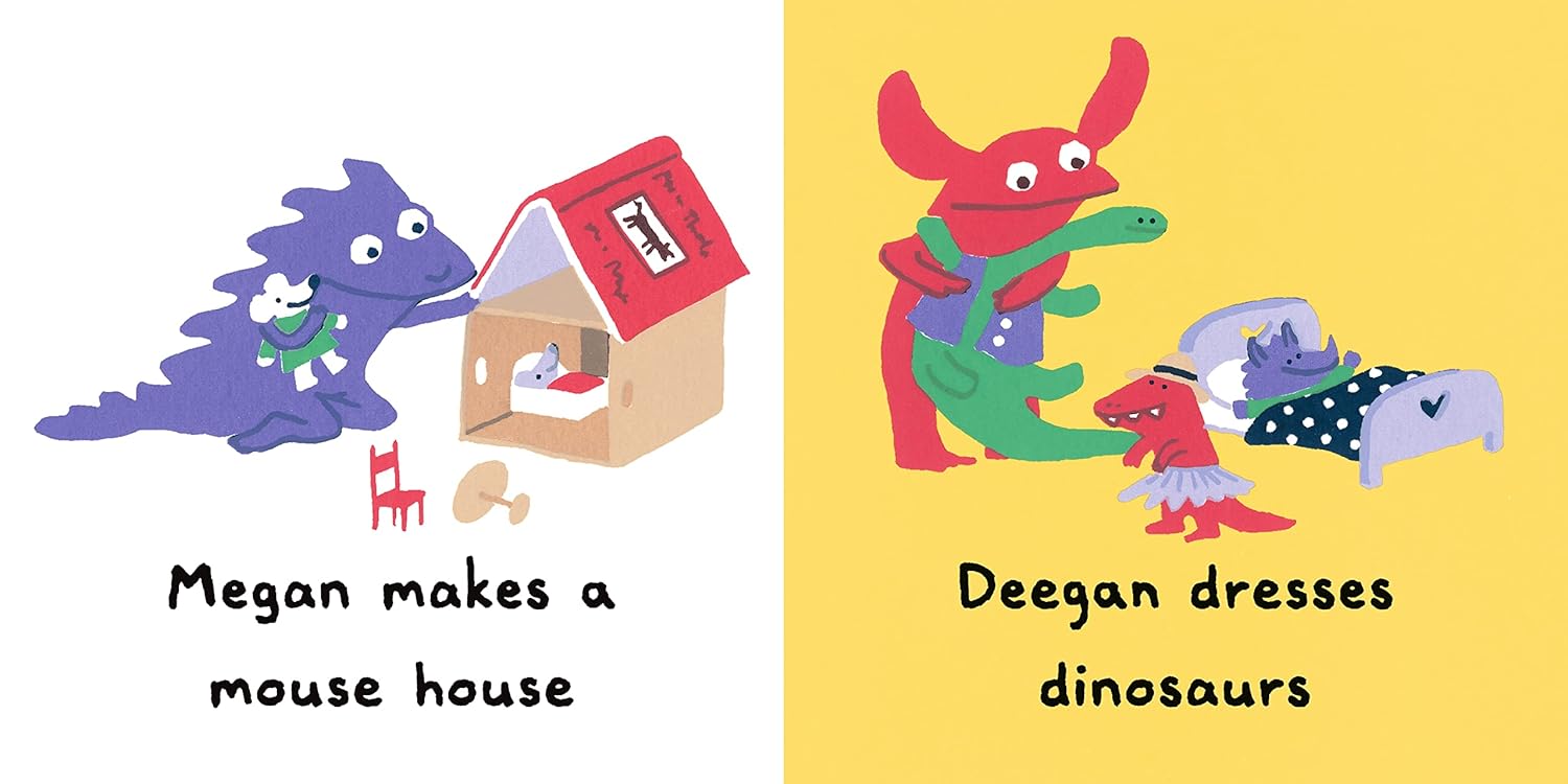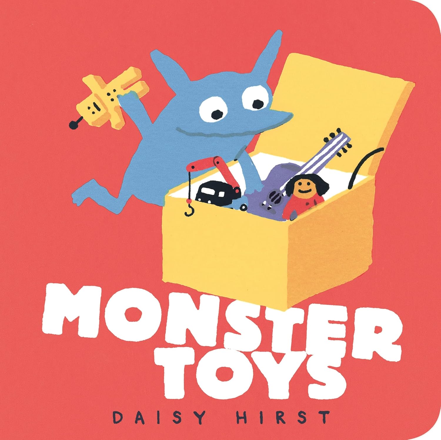 What do monsters like to play with? Toddlers will approve of the options in this bright, witty board book from Daisy Hirst.What will these little monsters do at playtime today? Megan is making a mouse house, and Deegan is dressing up dinosaurs. Leonie is busily lining up lemons, while Cassie is driving cars . . . into Peter and Parvil’s block palace. Oops! But Ramona needs a rest, so here comes Bernard with a blanket and book! Whether musical or messy, artsy or fond of copying the cat, toddlers will reach for Daisy Hirst’s charming paean to play.