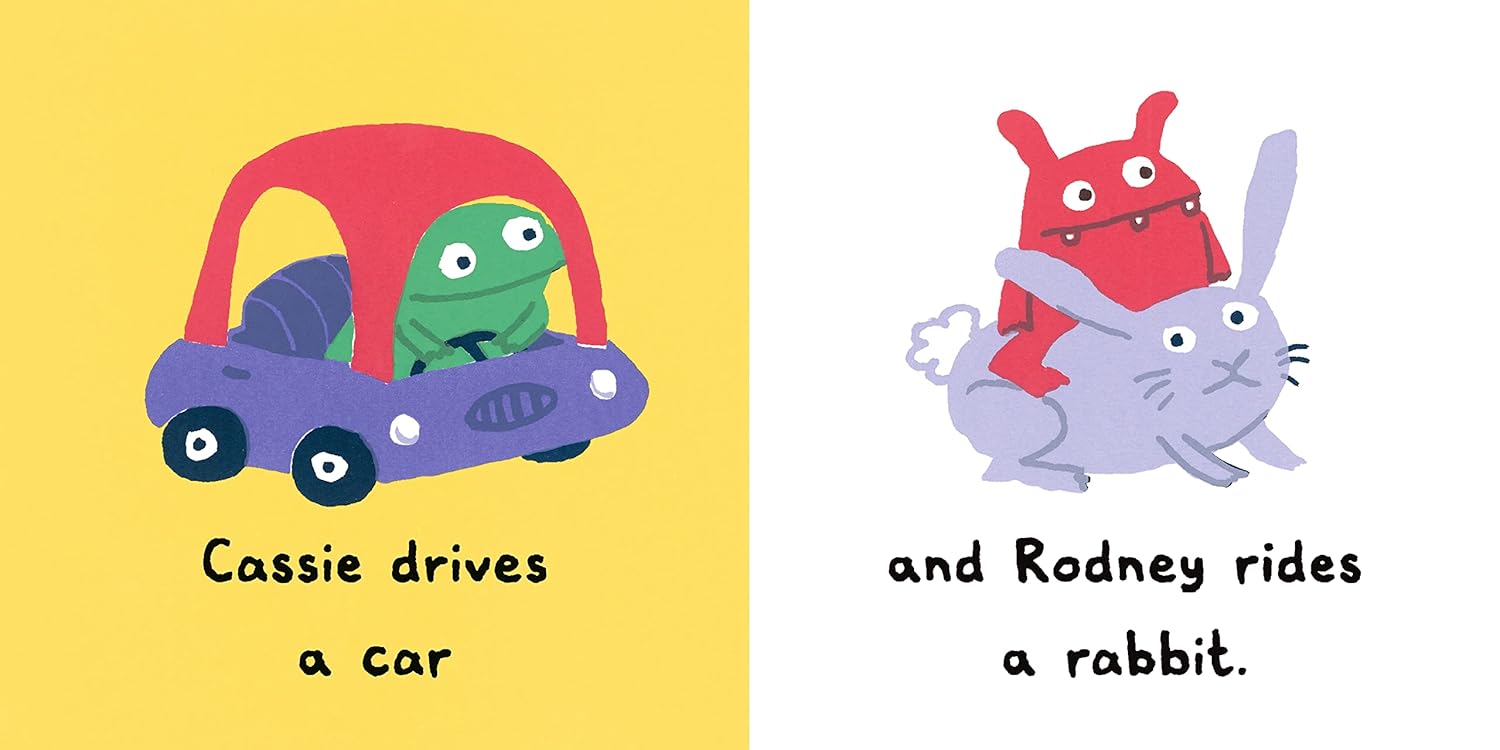 How do monsters get where they’re going? In a silly showcase of vehicles, Daisy Hirst offers a fresh spin on a favorite toddler subject.There’s more than one way for a little monster to travel! Skeeter speeds by on a scooter, and Willa likes to walk. Beatrice and Bobby take the bus, and there goes Rodney riding a rabbit! Kieran has high hopes of getting there by kite, and then there’s Catya, being carried by a cat. Every vehicle-loving toddler who likes a good giggle—and what toddler doesn’t?—will come running for Daisy Hirst’s charming and colorful ode to things that go.