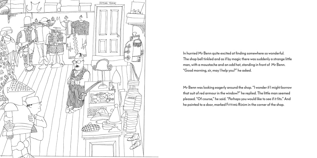 When Mr Benn visits the little fancy dress shop, he enters a fantastical world of adventure as if by magic... In this story, a red suit of armour catches Mr Benn's eye, and when he tries it on he finds himself transported to a land full of castles, dungeons and dragons!