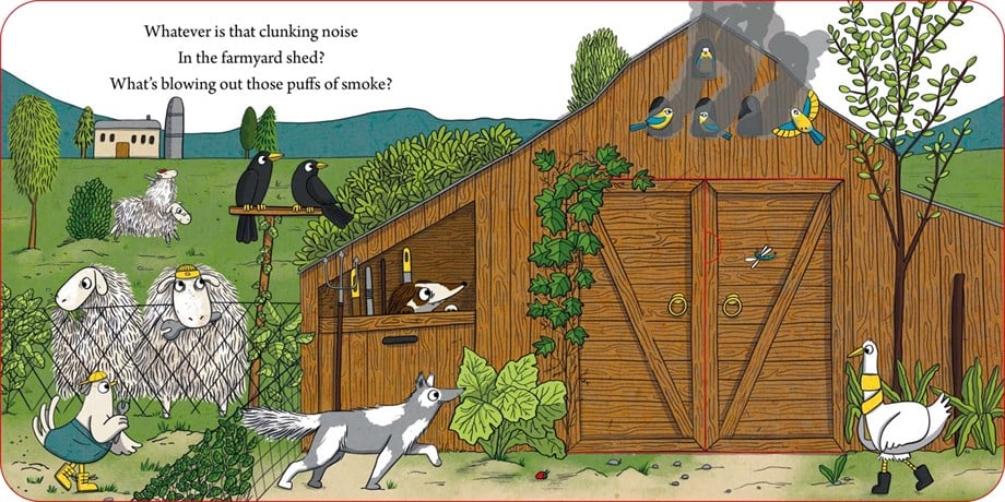 Whatever is that clunking noise In the farmyard shed? What's blowing out those puffs of smoke? A tractor and it's red!' The humorous story of a friendly farmer and their fantastic contraption a red tractor! Can Mr Chug fix his tractor so that he can plough his fields? The board book features rhyming text and flaps that can be lifted to reveal surprises. The highly-detailed, quirky illustrations are filled with wacky characters and objects to spot. An engaging introduction for young readers to 'things that go' and engineering.