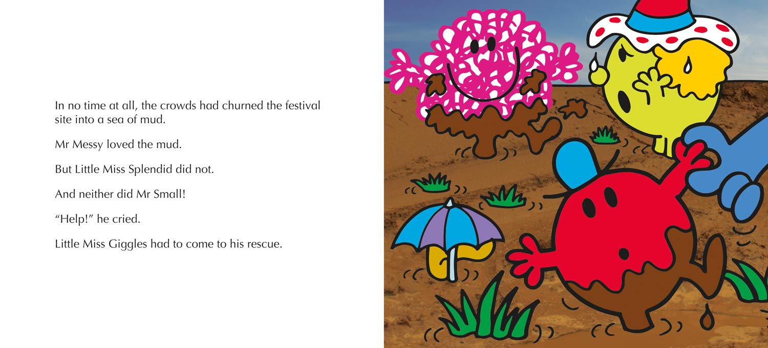 The friends are so excited about their first trip to a festival where there'll be music, face painting, fun activities and food. They pitch their tent and get ready to enjoy it the family-friendly fun, along with friends like Mr Small, Mr Tall and Mr Greedy. But will Little Miss Shy be able to overcome her self-consciousness and embrace all the fun of the festival?