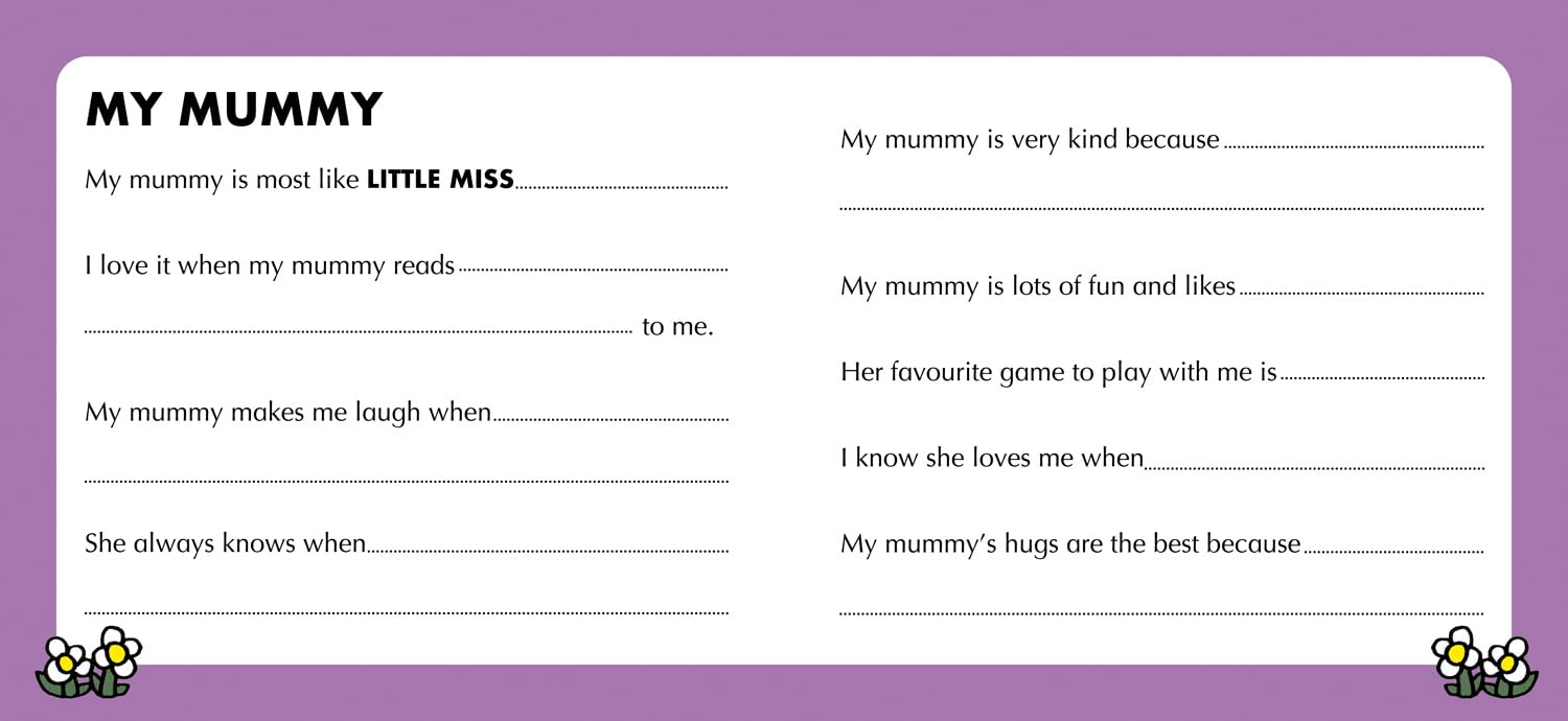 This very special Little Miss book is the perfect gift for Mother's Day. The Little Miss will help you show your mummy just how special she is to you. From making you smile, even when things are going wrong, to knowing just when hugs are needed, mummies are Splendid, Fun, Magic, Sunshine - lots of the Little Miss rolled into one! Children can also add their own words to the story to make it a really personal gift. The perfect book for your mummy's birthday, a new mother, Mother's Day, or for giving and sharing any time you want to say I love you, too. Now with a shiny foil cover! The Mr Men and Little Miss have been delighting children for generations with their charming and funny antics. Bold illustrations and funny stories make Mr Men and Little Miss the perfect story time experience for children aged 2 years and up.