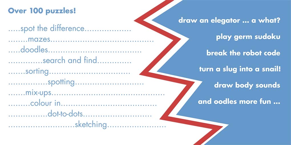 A hands-on activity book jam-packed with fill-in, on-the-page games and puzzles, including: doodles, counting, spotting, sorting, colouring, dot-to-dot, spot the difference and matching up. This is a bumper book that features all the classic activities that children love but with a quirky OKIDO twist. Play germ sudoku by completing the grid of bacteria; make an ‘elegator’; turn fruit and vegetables into superheroes; draw pictures of body sounds such as burps, whistles and rumbling tummies; match the monsters to their footprints. In the spirit of all OKIDO projects, the activities stimulate creativity and inspire interest in the sciences as well as being fun.