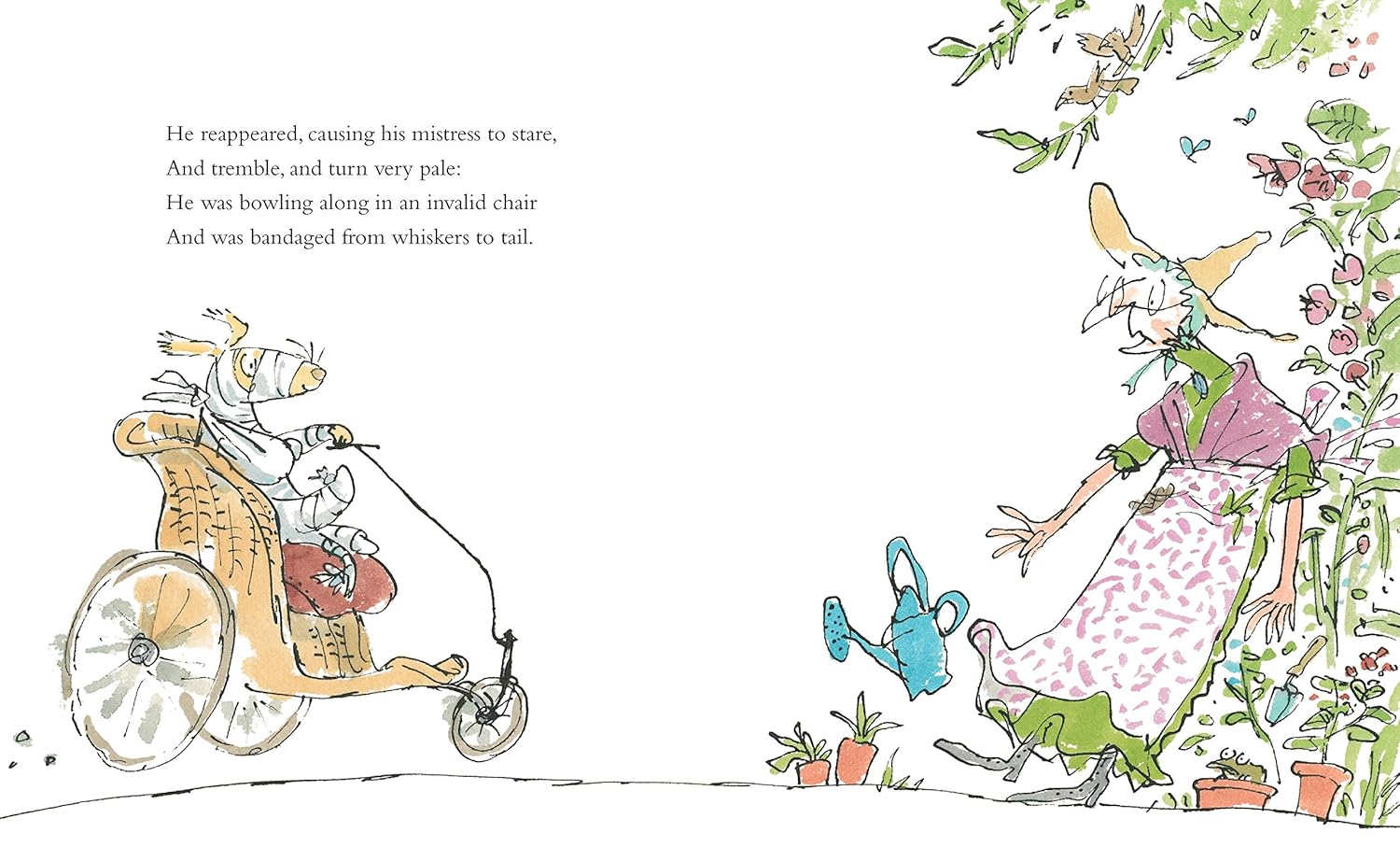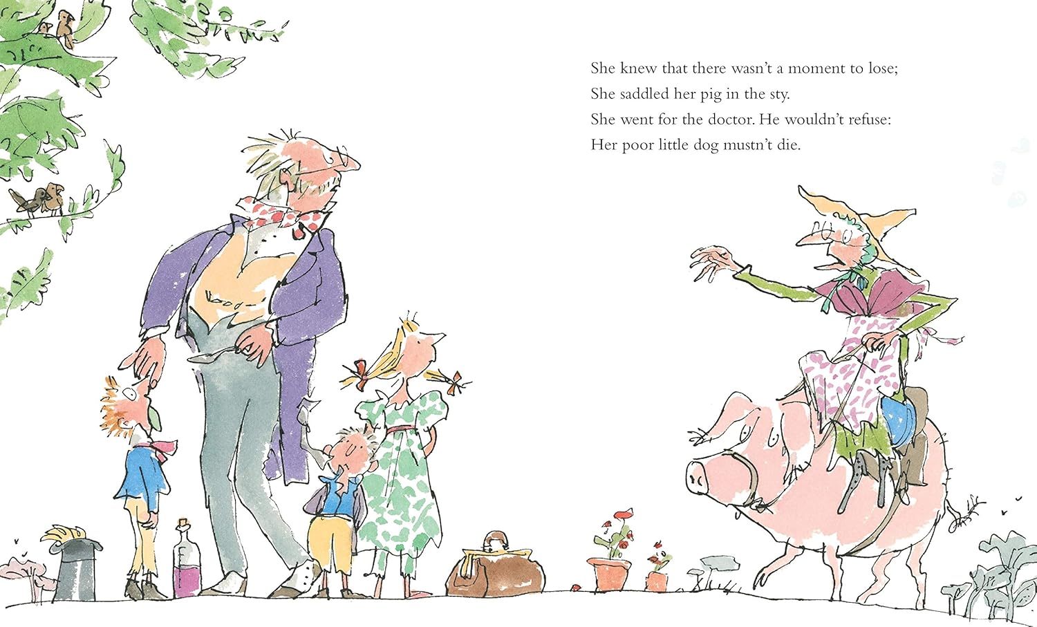 Old Mother Hubbard's Dog is up to no good! Old Mother Hubbard's mischievous pup is feeling under the weather and makes up all kinds of ailments! He paints himself with colourful spots, bandages himself from nose to tail and hiccoughs until the windows shake! Long-suffering Old Mother Hubbard tries her best to make him feel better, but nothing seems to work! Whatever can she do? This lively and humorous nonsense poem is brilliantly written by John Yeoman and illustrated exuberantly by Quentin Blake.