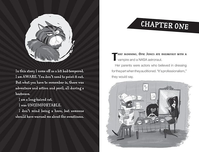 10-year-old Opie Jones is Very Ordinary. In fact nothing remarkable has ever happened to her, if you don’t count the cat that gives her funny looks from next door (which she doesn’t). So she is naturally very surprised when she is recruited to join The Resistance – a team of superheroes who can read minds, and have a dastardly brainwashing villain to defeat.