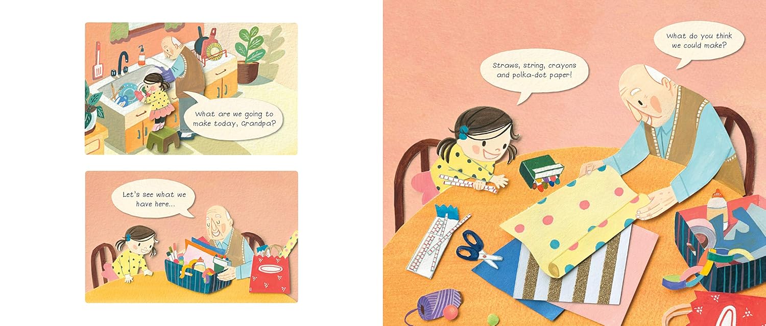 Charmingly detailed illustrations help tell a touching tale of the bond between grandparent and grandchild in a quiet yet powerful debut. “Thursdays are my favourite days.” “Mine, too.” Every morning Grandpa follows his normal routine. He drinks his tea, waters his plants, tidies up and takes the bus into town. Grandpa enjoys his daily tasks, but there’s one day each week that is extra special. That’s the day he might visit the craft shop, get two orders of dumplings to go, and possibly pick some flowers he sees along the path. With its spare text and wonderfully warm watercolour and cut-paper illustrations just begging to be pored over, Joowon Oh’s tale of the love between a grandfather and granddaughter will nestle within the heart of every reader.