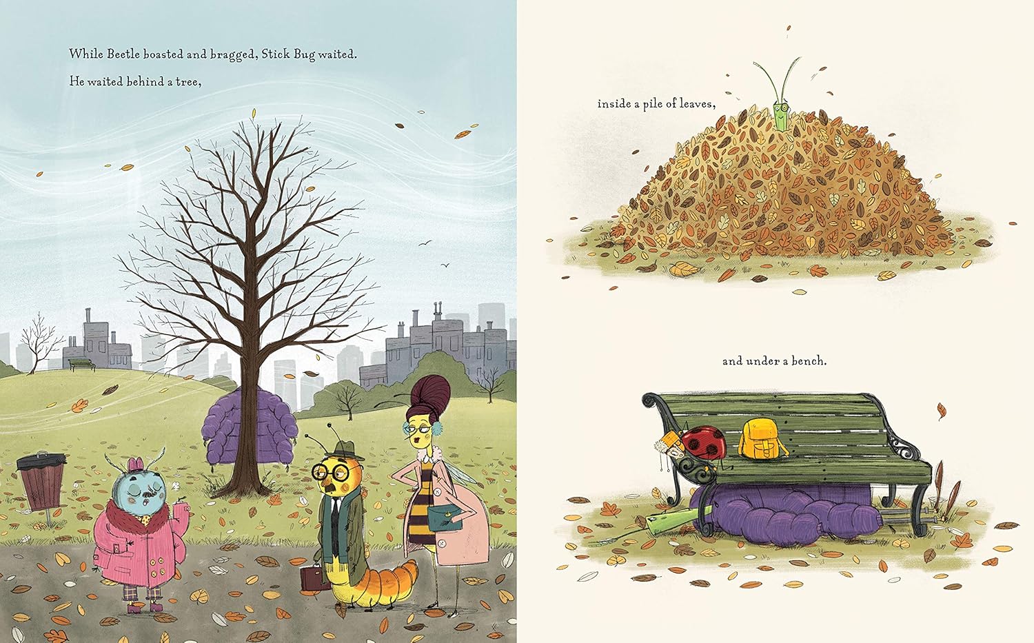 It's almost Stick Insect's birthday, and his fashionable friend Beetle can't wait to give him his present a purple puffy coat! The coat draws a lot of attention and makes Stick Insect really stick out in the crowd. Beetle thinks that's terrific! He takes Stick Insect all over town, happily boasting and bragging (while Stick Insect waits behind a tree, in a pile of leaves, or under a bench). Oh, dear maybe Stick Insect isn't as happy about the purple puffy coat as Beetle is! What can Beetle do to make Stick Insect feel more comfortable? Charming illustrations bring to life both characters' endearing struggles in this warm and humorous story about friendship and understanding each other.