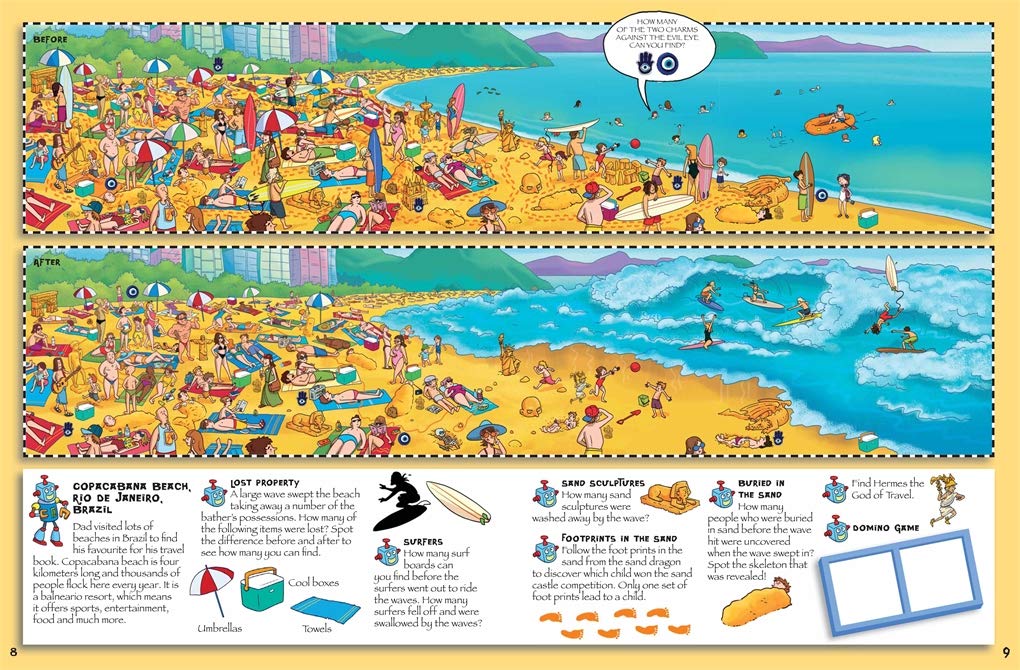 Are you ready to journey around the planet to find Dad, a journalist who has been kidnapped? Help Zak and Leah solve the puzzles and save him! Battle your way through ten scenes and solve the puzzles, from brain-busting maths conundrums to spot-the-difference. Prepare to take a tour through a Machu Picchu maze, go hunting with the Inuits, discover the tallest skyscrapers in the world, dig into a gold mine and explore the Great Wall of China. You'll discover lots about the way people live, work and play around the world. There are search and find challenges on every page. Puzzle Heroes is an interactive series of very fun, visually-led books containing an adventure or challenge on every page. There are plenty of search-and-find elements in the style of Where's Wally?, combined with topics of educational value, where fun facts help with the challenges. This gives plenty of opportunity to use the book as an extra learning tool - but ultimately the quests are fantastic fun, engrossing readers to the extent that they won't realise they are learning.