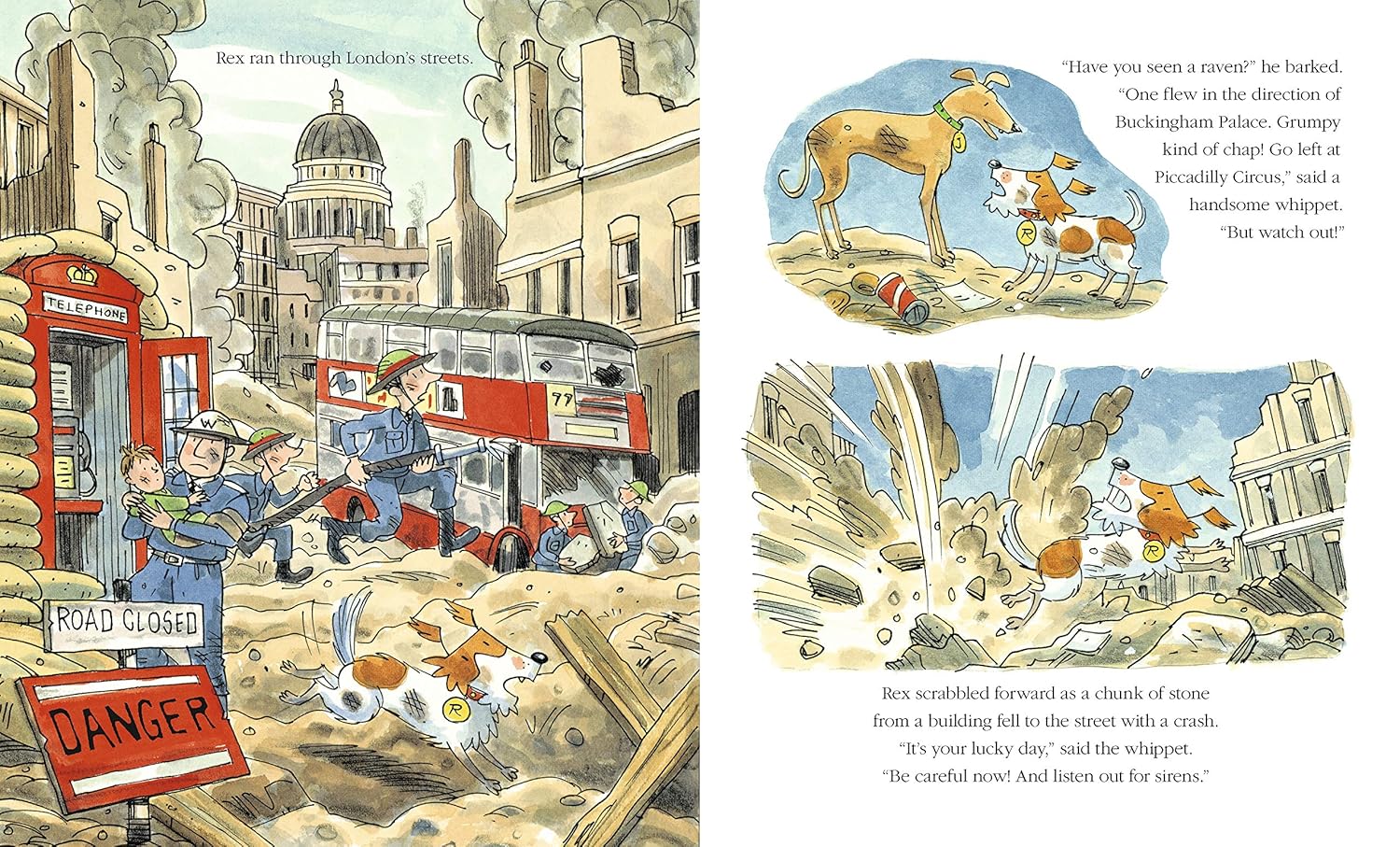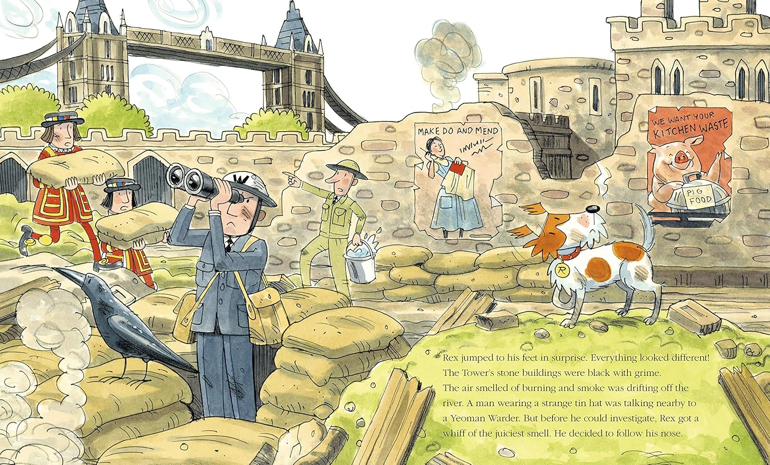 Rex lives at the Tower of London and likes nothing better than sniffing around in juicy litter bins. But his favourite bin of all isn't just a litter bin it's also a time machine. He jumps in and he's transported back to the London Blitz where his friends the ravens are really hungry! When Gripp, the royal raven, doesn't come back from a food-finding mission, it's up to Rex to rescue him. But when the trail leads to the sparkling gates of Buckingham Palace, Rex realizes this might be trickier than he thought. Can Rex rescue Gripp and find food for the hungry ravens? And perhaps he'll make some royal friends along the way!