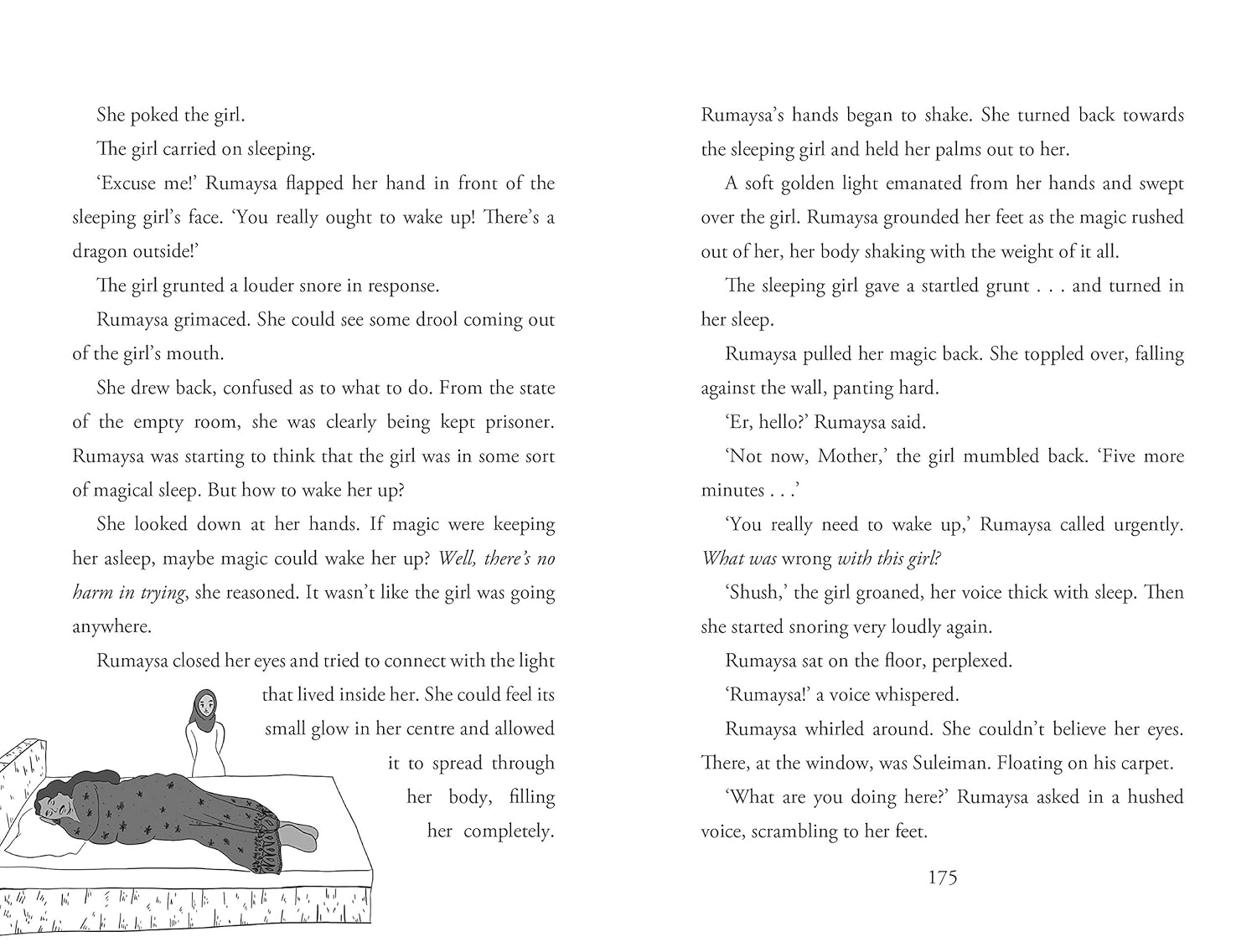 Step into a Once Upon a Time where anything is possible . . . Radiya Hafiza's enchanting and funny debut weaves together three stories, spinning the classic fairytale to show that anyone can be a hero. 'Rumaysa, Rumaysa, let down your hijab!' For as long as she can remember Rumaysa has been locked away in her tower, forced to spin straw into gold for the evil Witch, unable to leave. Until one day, after dropping a hijab out of her small tower-window, Rumaysa realizes how she might be able to escape . . . Join Rumaysa as she adventures through enchanted forests and into dragon's lairs, discovers her own incredible magical powers and teams up with Cinderayla and Sleeping Sara! Rumaysa: A Fairytale is a magically fresh, empowering and funny debut, which retells three classic fairytales - Rapunzel, Cinderella and Sleeping Beauty - with beautiful inside illustrations by Rhaida El Touny and cover illustration by Areeba Siddique. Discover more of Rumaysa's adventures in the enchanting sequel Rumaysa: Ever After.