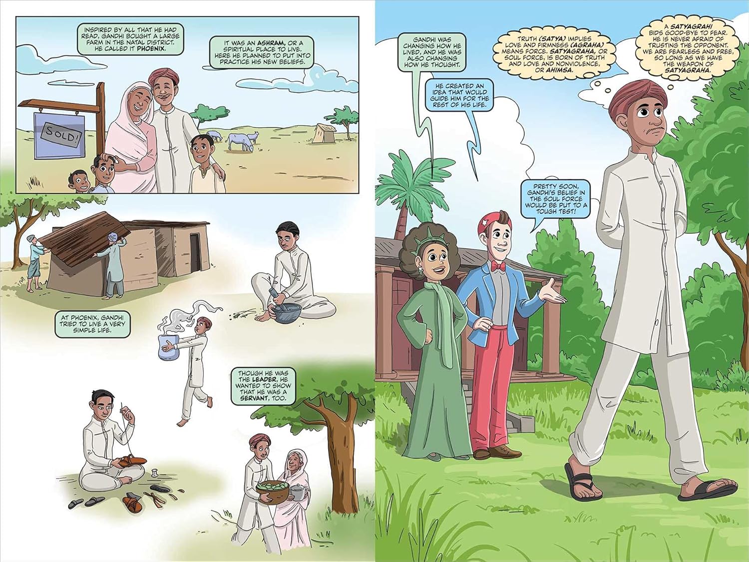 This biography of Mahatma Gandhi is presented in a graphic novel format, making it accessible and entertaining for readers across a range of age groups. After being named president of the Indian National Congress in 1921, Gandhi was instrumental in gaining India’s independence from Great Britain by using nonviolent resistance—and in the process he inspired generations of civil rights leaders with his example. Gandhi: The Peaceful Protester! recounts this humble leader’s story, from his youth in western India through his years as a lawyer and political activist who practiced kindness and empathy toward everyone.