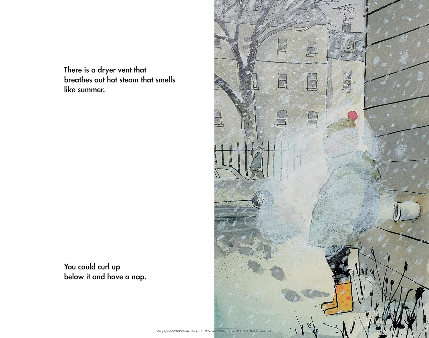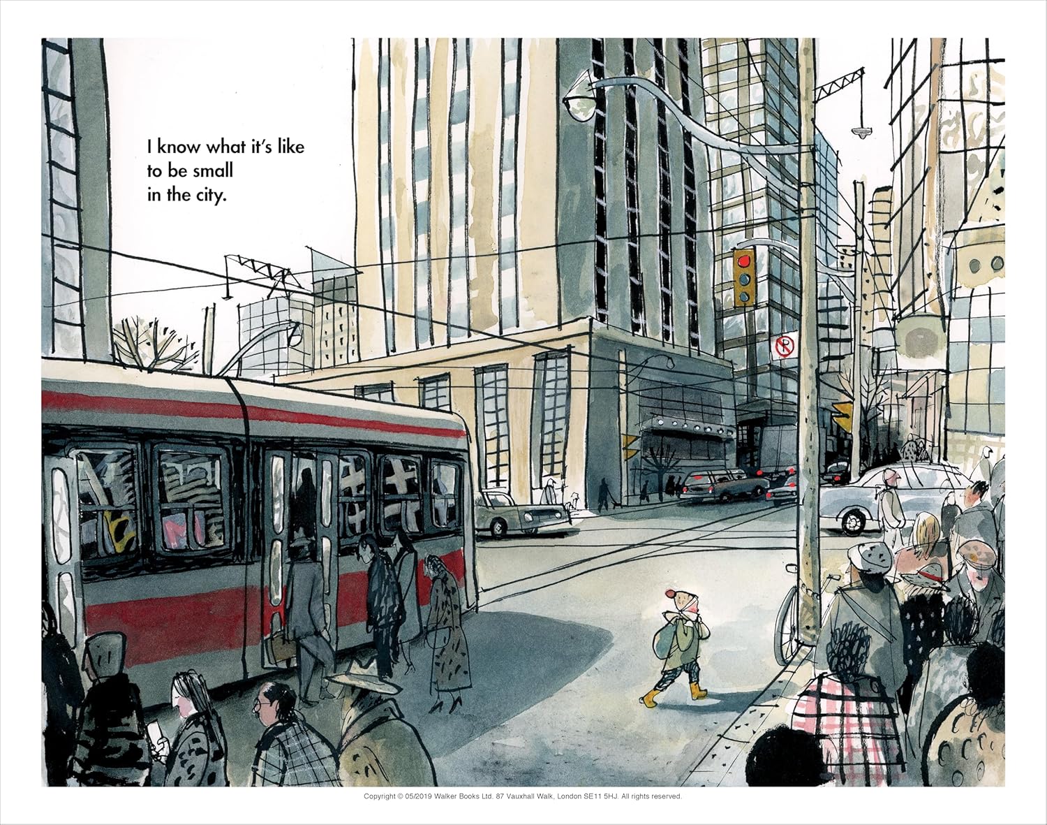 I know what it's like to be small in the city... Being small can be overwhelming in a city. People don't see you. The loud sounds of the sirens and cyclists can be scary. And the streets are so busy it can make your brain feel like there's too much stuff in it. But if you know where to find good hiding places, warm dryer vents that blow out hot steam that smells like summer, music to listen to or friends to say hi to, there can be comfort in the city, too. We follow our little protagonist, who knows all about what its like to be small in the city, as he gives his best advice for surviving there. As we turn the pages, Sydney Smith's masterful storytelling allows us to glimpse exactly who this advice is for, leading us to a powerful, heart-rending realization...