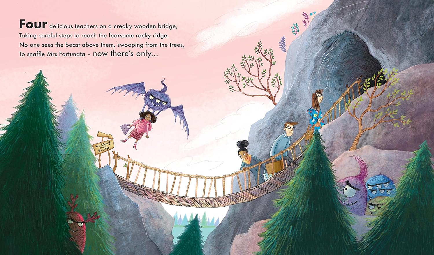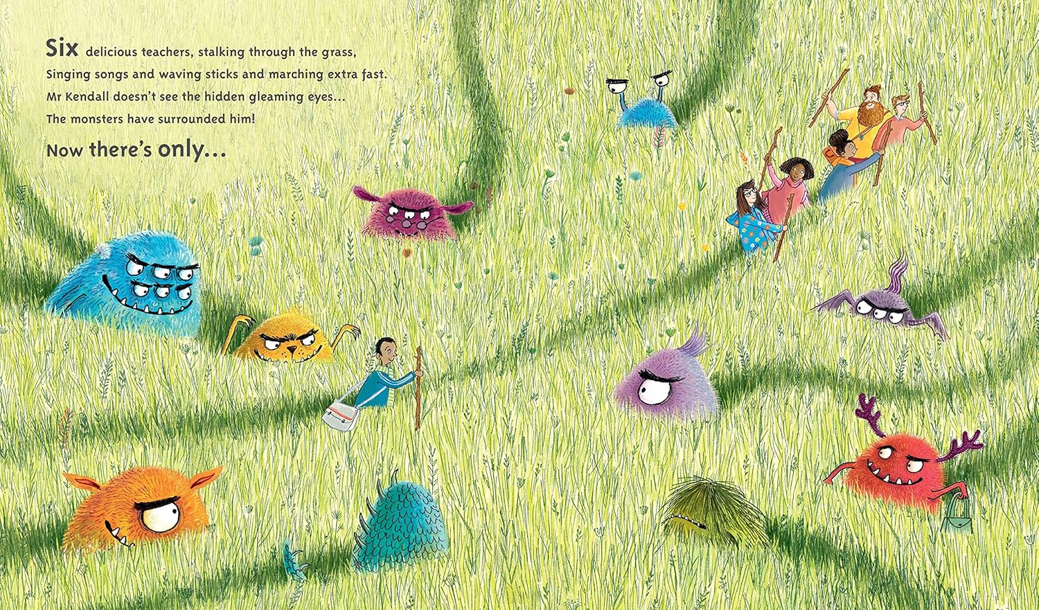 An irreverent and zany counting book that is gently thrilling and written in a deliciously infectious rhyme with witty and whimsical illustrations. Written by the award-winning author of the Waterstones Children's Book of the Year 2024. Ten very foolish teachers have missed the last bus home. But LOOK - a shortcut through the forest! They'll be back in time for tea! Off they skip, unaware that in the woods a hungry horde of mischievous and hilariously goofy monsters is waiting... An irreverent and zany counting book that is gently thrilling with witty and whimsical illustrations. Perfect for children starting or going back to school, and as a present for teachers.