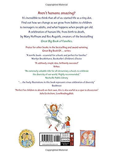 The Great Big Book of Life a glorious, diverse celebration of human life, from birth to death, by Mary Hoffman and Ros Asquith. Featuring funny artwork and wonderfully sensitive and accessible text this book is a must have for children everywhere to learning everything they need to know about the story of life. The sixth title in the Great Big Book series explores every stage of human life. From birth to starting nursery, being a teenager to becoming an adult, from work to relationships, homes and jobs, to aging illness and death. This universal but challenging topic is dealt with Mary Hoffman and Ros Asquith's trademark sensitivity and humour and inclusivity. This is the perfect introduction for children to the huge topic of life and is sure to answer many of the question they have.