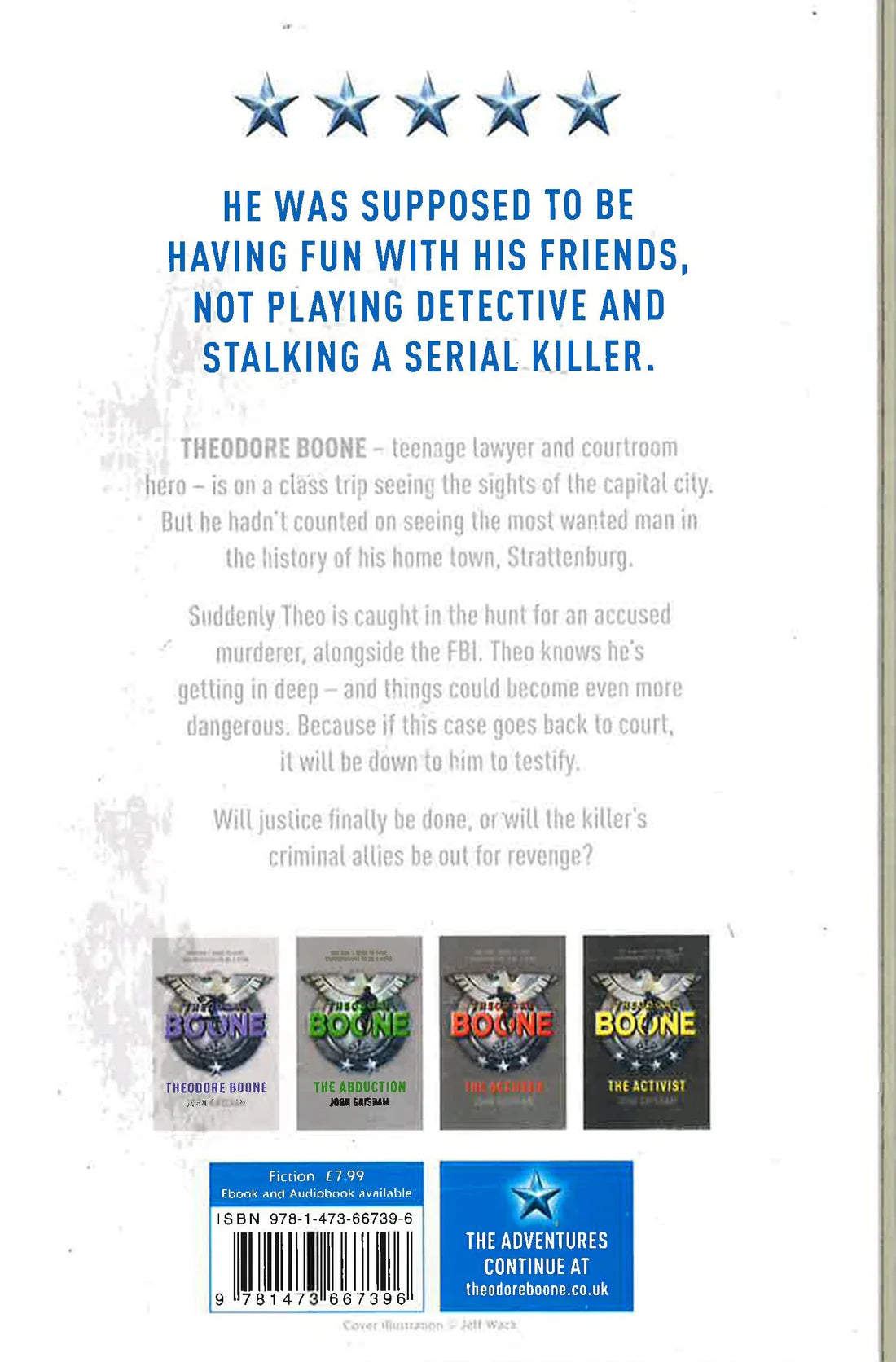 Theo Boone thought the danger had passed, but he's about to face off against an old adversary: accused murderer and fugitive Pete Duffy. On a field trip to Washington, DC, Theo spots a familiar face on the Metro: Duffy, who jumped bail and was never seen again. Theo's quick thinking helps bring Duffy back to Strattenburg to stand trial. But now that Duffy knows who he is, Theo is in greater danger than he's ever been in before. Even when everything is on the line, Theodore Boone will stop at nothing to make sure a killer is brought to justice.