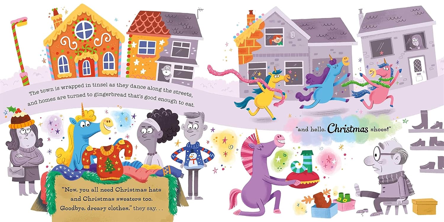 No one in this gray, boring town has ever heard of Christmas, until the unicorns arrive! Can they spread enough festive cheer before Santa visits? Through vivid illustrations and a heartwarming storyline, readers are taken on a journey where they'll witness the transformation of a once-drab town into a haven of holiday delight, all thanks to our unicorn heroes.