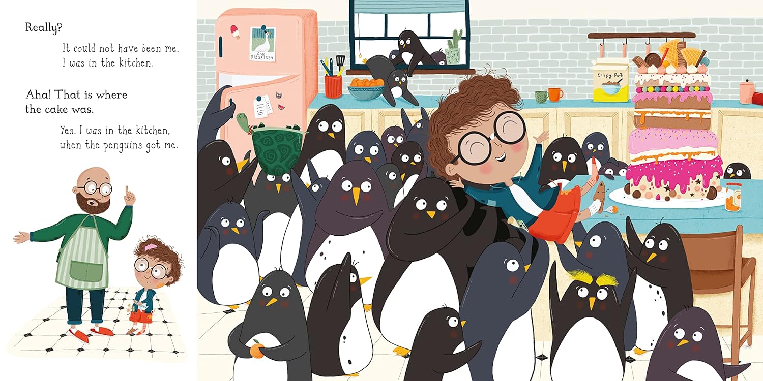 An irresistible tall tale full of warmth, wit, cake and . . . penguins! Perfect for small children with big imaginations. "I did not eat the cake." A cake has gone missing from the kitchen and Dad wants to know where it has gone. But Albert says it wasn't him. Oh, no. It was eaten by some very naughty penguins who then kidnapped Albert and took him on a madcap adventure involving international travel in a giant jar of marmalade and a snowball fight with kangaroos. Albert's dad is not impressed. But Albert swears he's telling the truth. HE DID NOT EAT THE CAKE! Could his story really be true?