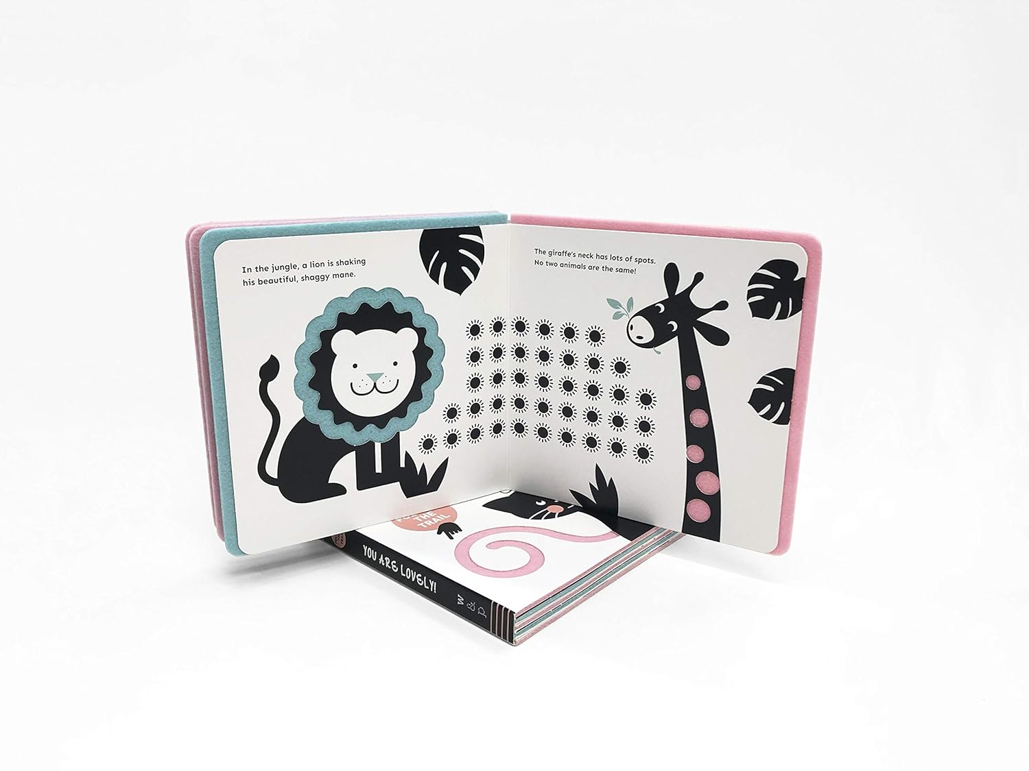 Gently rhyming text explores 8 different animals and why they are so lovable, in this delightful board book. A felt layer between each page, encourages your little one to practice turning the pages themselves using the easy-to-hold felt edges, while little fingers can also trace the soft, felt patterns to engage with the story and improve hand-eye coordination. Bold, simple artwork is specially created with minimal colours and black lines to appeal to young children and babies.